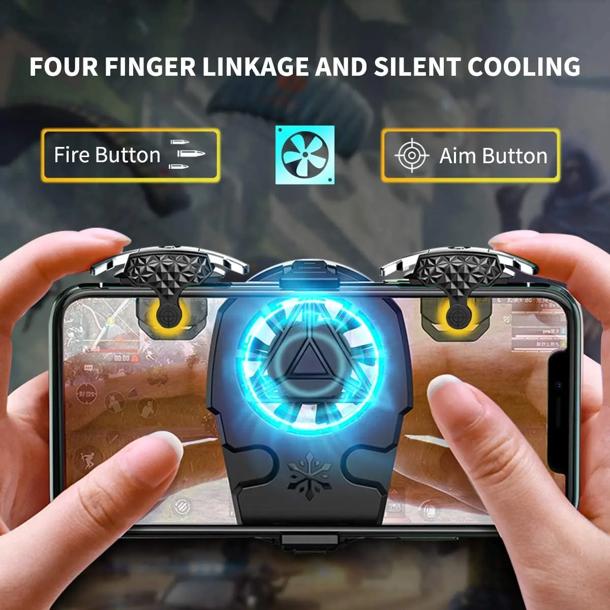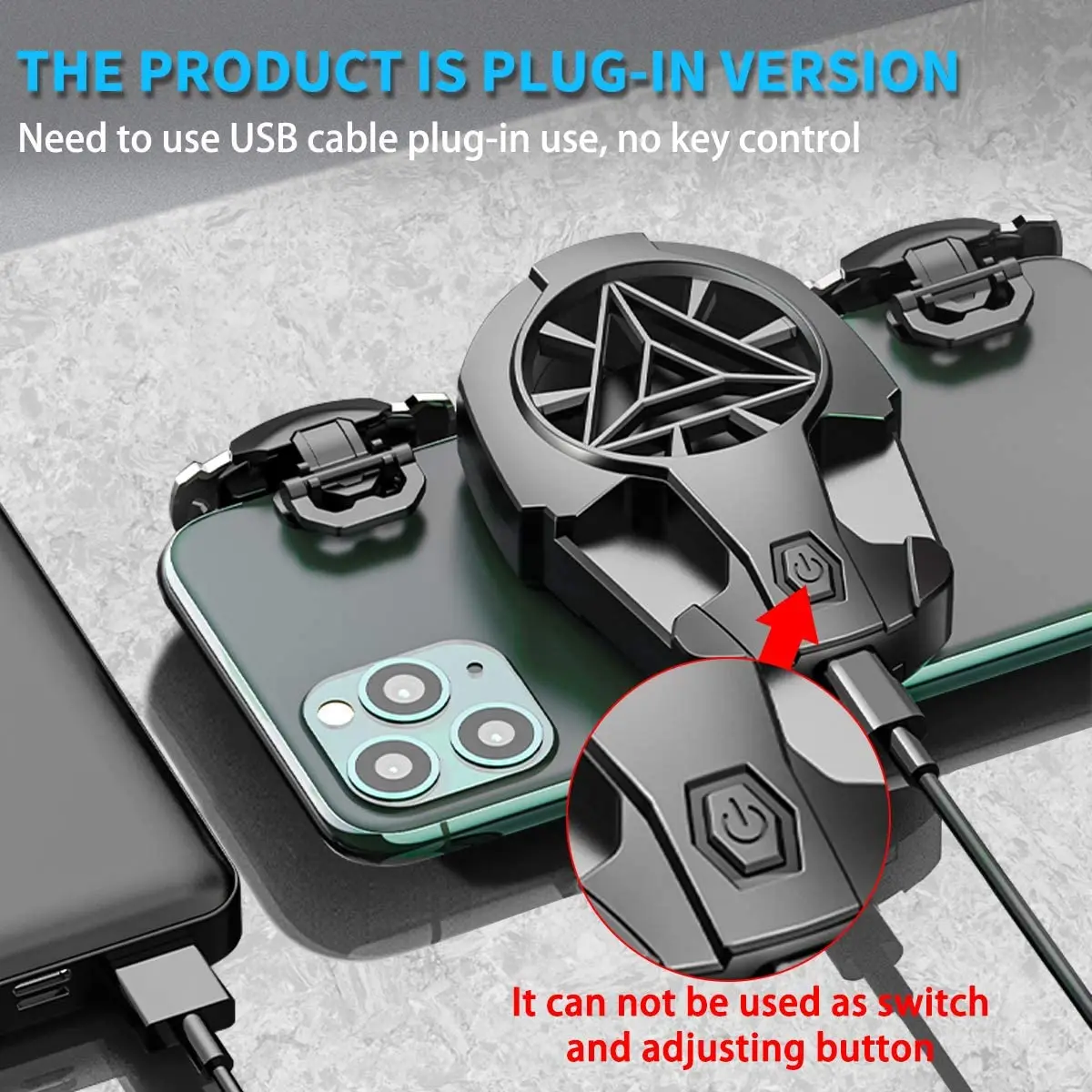 1,2-в-1 игровой контроллер для мобильных устройств-игровой контроллер для мобильных устройств в сочетании с игровой триггер, телефон, вентилятор охлаждения как единое целое. (Примечание: Пожалуйста, не нажимайте кнопку питания на охлаждающем вентиляторе, кнопка питания не работает, это только для украшения, нет функции «Пуск» «стоп». Сам триггер не имеет аккумулятора, вентилятор должен работать с usb-кабелем)2. Бесшумный охлаждающий вентилятор-вентилятор охлаждения имеет два силиконовых мата на кромке охладителя надежно удерживает телефон, чтобы телефон не падал и не царапался. В радиатор на мобильный телефон нет кнопки питания или аккумулятора. Поэтому его необходимо использовать с прилагаемым usb-кабелем-после того, как usb-кабель будет подключен к источнику питания, Радиатор вентилятора может работать нормально.3. Удобный игровой опыт-без скользящей ручки, привычная эргономичная компоновка консоли и чувствительные к давлению кнопки, вы можете одновременно перемещать, поворачивать, прицеливаться и снимать, ваши пальцы не будут чувствовать усталость даже после долгих игр.Широкая совместимость-Простота в использовании, подходит для всех моделей мобильных телефонов. Такие как Android ios phone. Подходит для различных съемок игр, таких как PUBG Mobile, правила выживания, Survivor Royale, Critical Ops и т. Д. До тех пор, пока игра позволяет настраивать и обрабатывать ключи.
