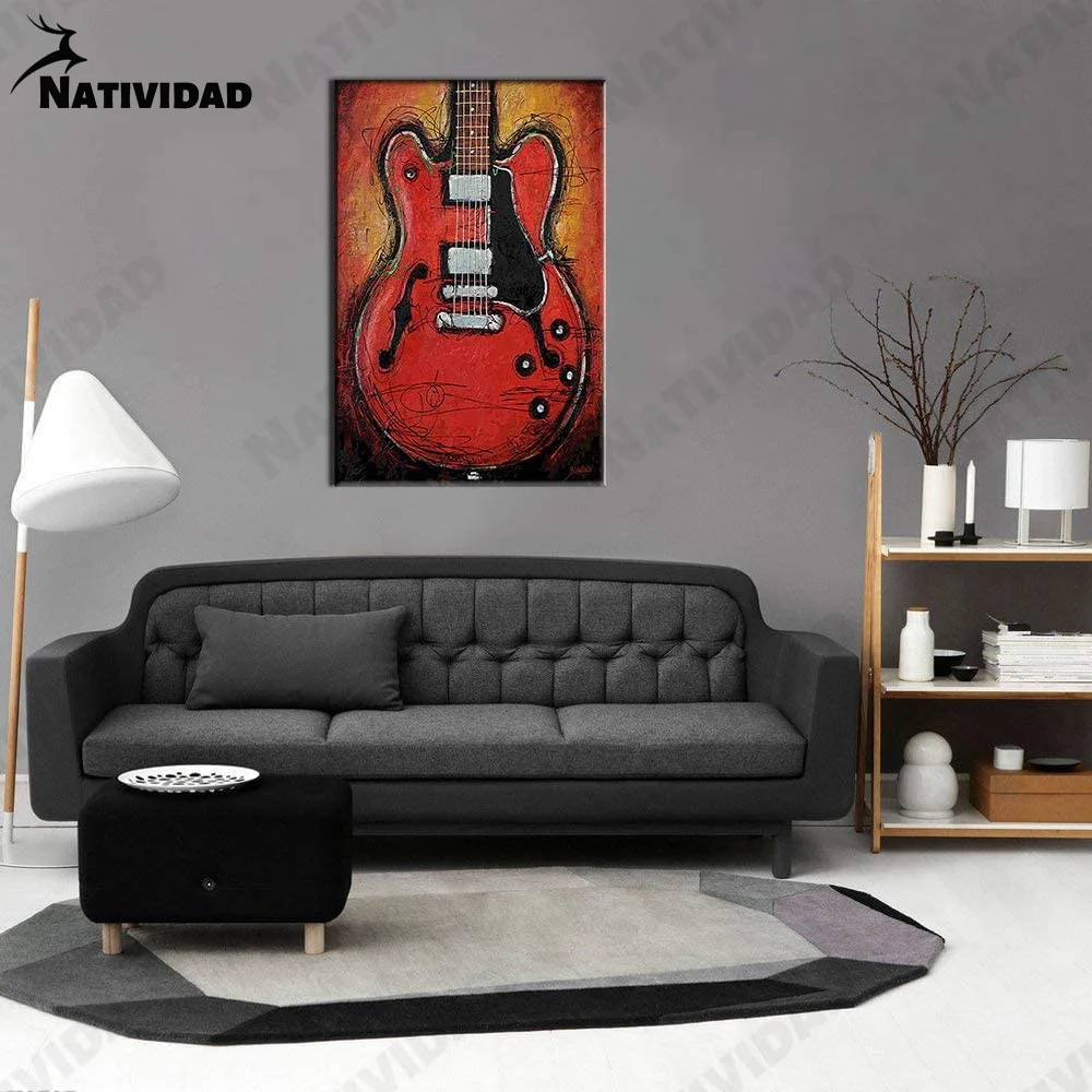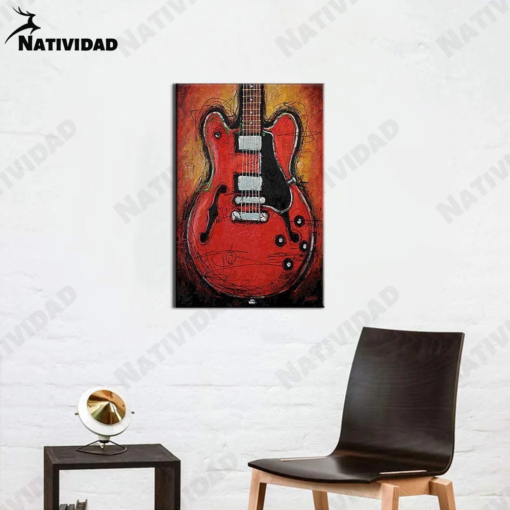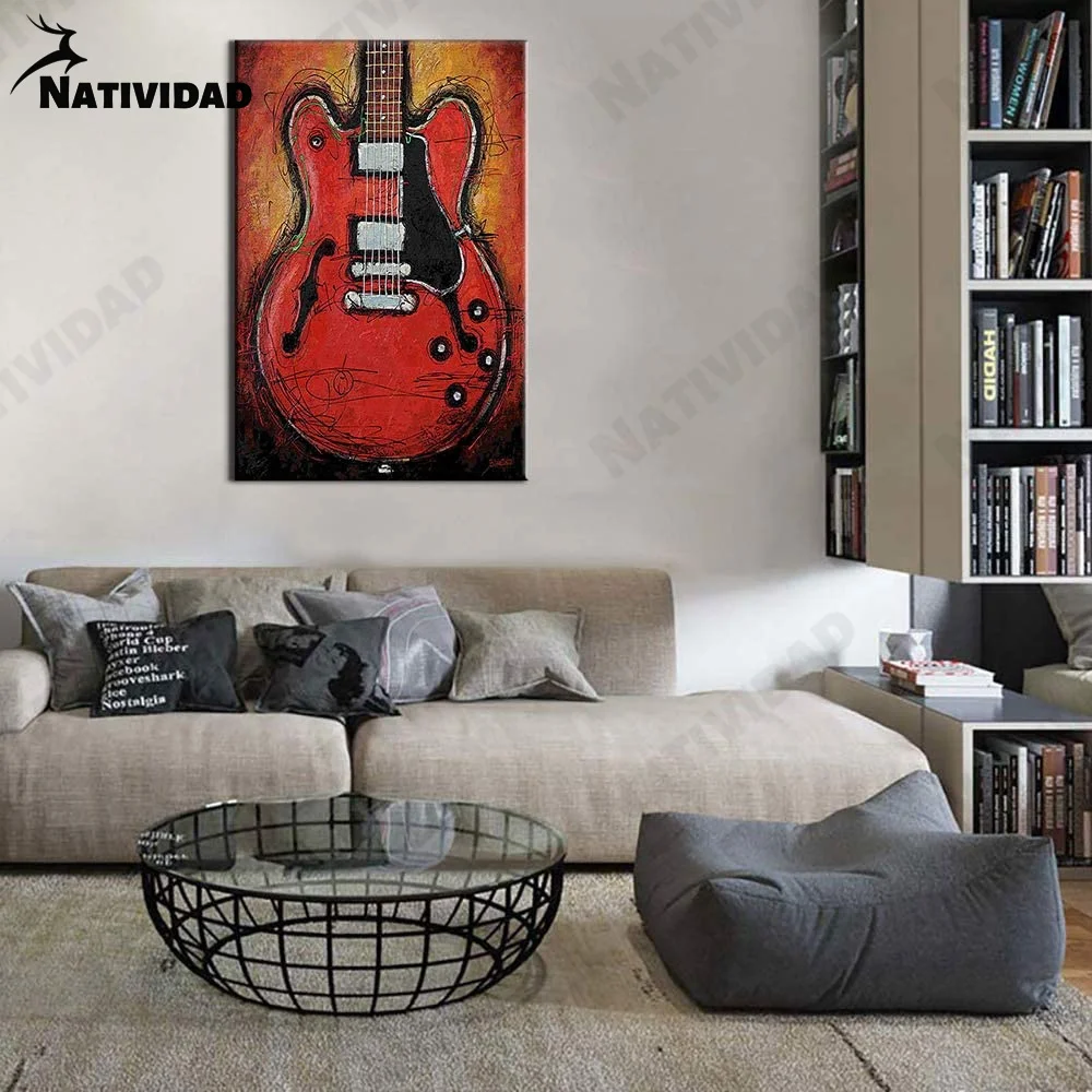 Абстрактная Картина на холсте, красное граффити, гитара, настенный плакат с музыкальными инструментами, украшение для гостиной, для дома, для концертных залов, художественное украшение