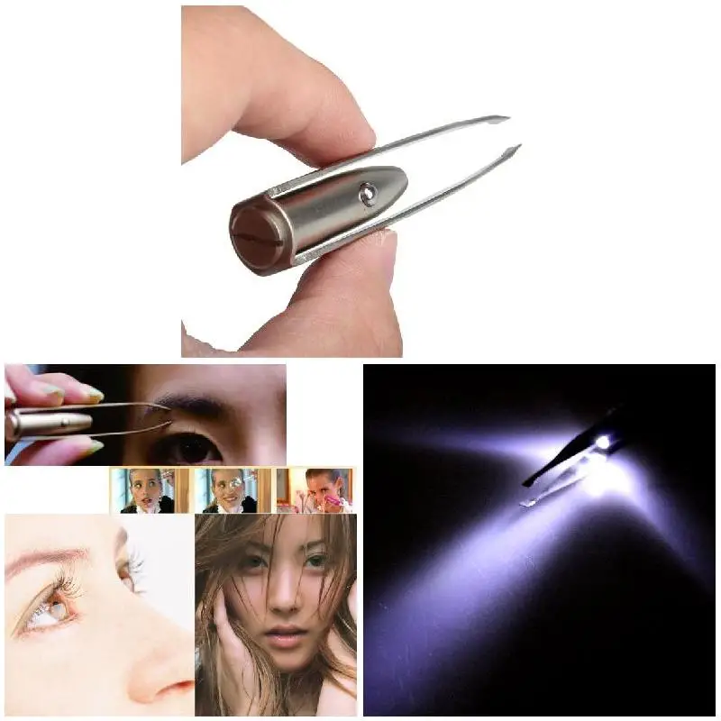 Пинцет для бровей из нержавеющей стали с светодиодный светильник для удаления волос инструмент для макияжа NN