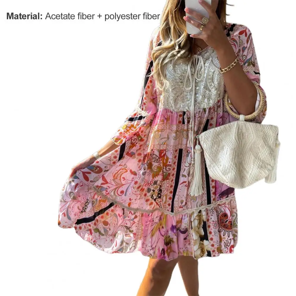 Женское элегантное платье в этническом стиле с принтом, оборками, квадратным воротником и шнуровкой, платье для отпуска Описание:Принт в этническом стиле делает это платье очень привлекательным. А кружевная строчка и дизайн с блестками делают это платье уникальным.Расклешенные рукава и подол платья с оборками добавляют ощущение моды и дизайна этому платью. Дизайн с завышенной талией может удлинить ваш рост.Изготовлен из высококачественной смесовой ткани, приятен для кожи и удобен в носке.Есть пять размеров на выбор: S, M, L, XL, 2XL.Подходит для прогулок, улицы, повседневной носки и так далее. Название товара: платьеМатериал: смесь тканиПол: женщинСтиль: ПовседневныйСезон: летоТип размера: ОбычныйТалия: высокая талияВырез: круглый вырезДлина рукава: рукав 3/4Длина платья: Короткая длинаОсобенности: принт в этническом стиле, подол с оборками, свободныйРазмеры:[Наш Размер S] Бюст: 92 см/36,2 дюйма, Плечи: 35 см/13,8 дюйма, рукав: 30 см/11,8 дюйма, длина: 90 см/35,4 дюйма (прибл.)[Наш Размер M] Бюст: 96 см/37,8 дюйма, Плечи: 35 см/13,8 дюйма, рукав: 30 см/11,8 дюйма, длина: 91 см/35,8 дюйма (прибл.)[Наш Размер L] Бюст: 100 см/39,4 дюйма, Плечи: 36 см/14,2 дюйма, рукав: 31 см/12,2 дюйма, длина: 92 см/36,2 дюйма (прибл.)[Наш Размер XL] Бюст: 104 см/40,9 дюйма, Плечи: 36 см/14,2 дюйма, рукав: 31 см/12,2 дюйма, длина: 93 см/36,6 дюйма (прибл.)[Наш Размер 2XL] Бюст: 108 см/42,5 дюйма, Плечи: 37 см/14,6 дюйма, рукав: 32 см/12,6 дюйма, длина: 94 см/37 дюймов (прибл.) Примечания:Пожалуйста, обратитесь к нашей таблице размеров и выберите правильный размер.Из-за разницы в освещении и настройках экрана цвет изделия может немного отличаться от изображения. Посылка входит:1 х платье