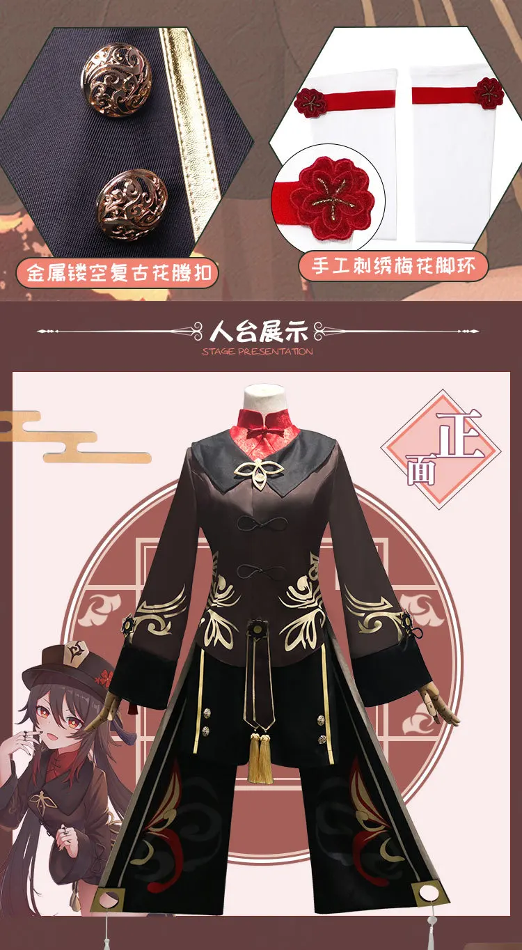 Аниме игра Genshin Impact Hu Tao Униформа платье Великолепная Одежд...
