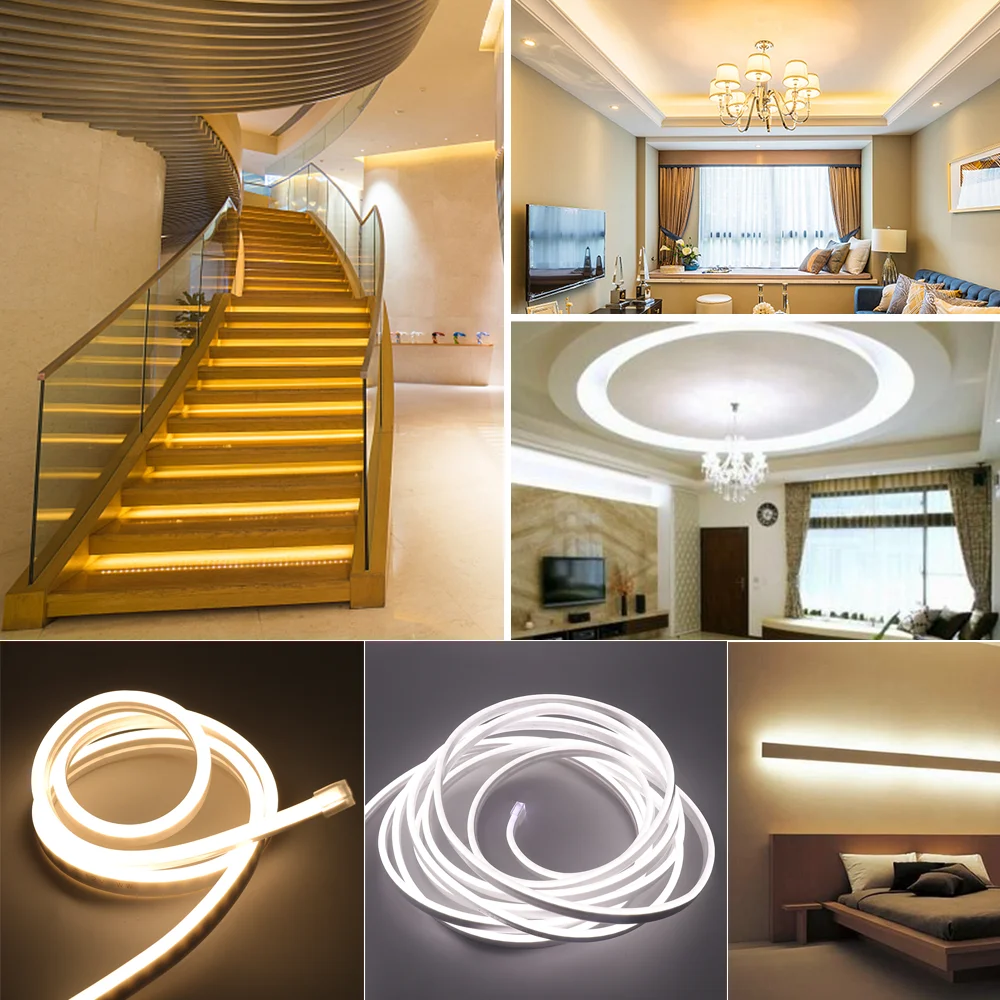 ► 12V низшее напряжение силиконовый светодиодный полосы светильник s веревка, гибкая лампа Особенности ремня термостойкий, водонепроницаемый, устойчивый к коррозии, устойчивость к атмосферным воздействиям и известных анти-УФ способность по сравнению с традиционными ПВХ куртка, обеспечивает безопасность и делает этот светодиодный светильник более длительным.►Модернизированные светодиоды и дизайн с боковой яркостью делают водонепроницаемый неоновый светильник ярче, чем другие, дальность проекции 120 градусов обеспечивает большое освещение.►Cuttable неоновая лента, 2,5 см (0.98in) на вырезать, пожалуйста, приобретите дополнительные силиконовый клей для того чтобы вставить наших ламп в любом месте, которые вам нравятся, 360 градусов, вы можете разрезать на DIY специальное украшение для жилых помещений/Дизайн Уникальный коммерческий знак.►Использование Премиум чипов 2835, 120 светодиодов/м, ярче и эффективнее. Наш бесточечный светодиодный неоновый светильник, равномерно светящийся, отлично подходит для рекламных вывесок, контуров, стола/кровати/автомобиля/украшения стен и многого другого, подходит для использования в помещении/на открытом воздухе/круглый год.