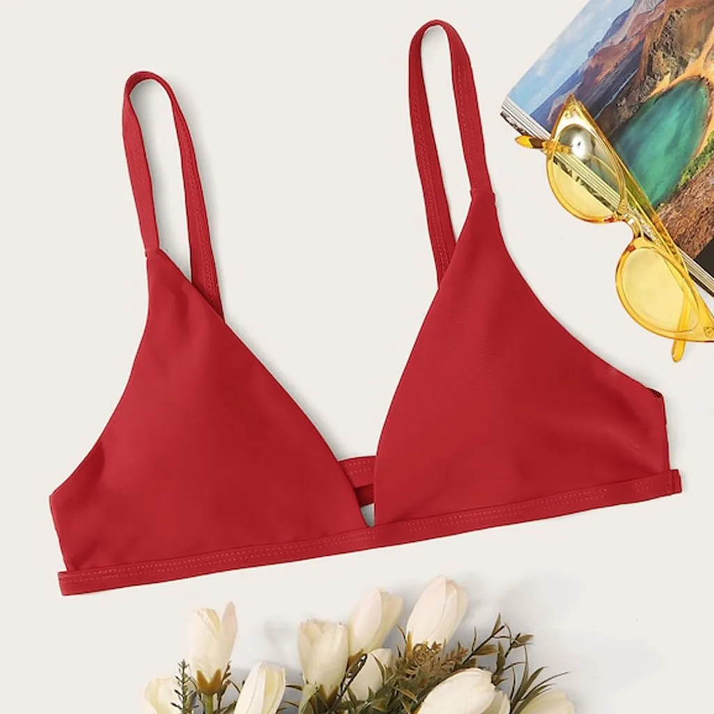 2021 сексуальные женские красные купальники бикини однотонные пуш-ап мягкая пляжная одежда женская одежда для купания Топ для плавания Maillot De Bain Femme kупа