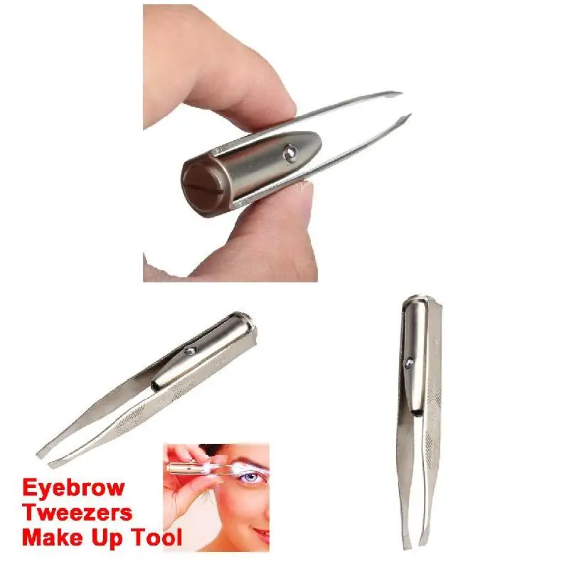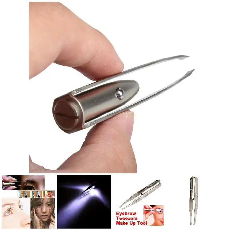 Пинцет для бровей из нержавеющей стали со светодиодный светильник к...