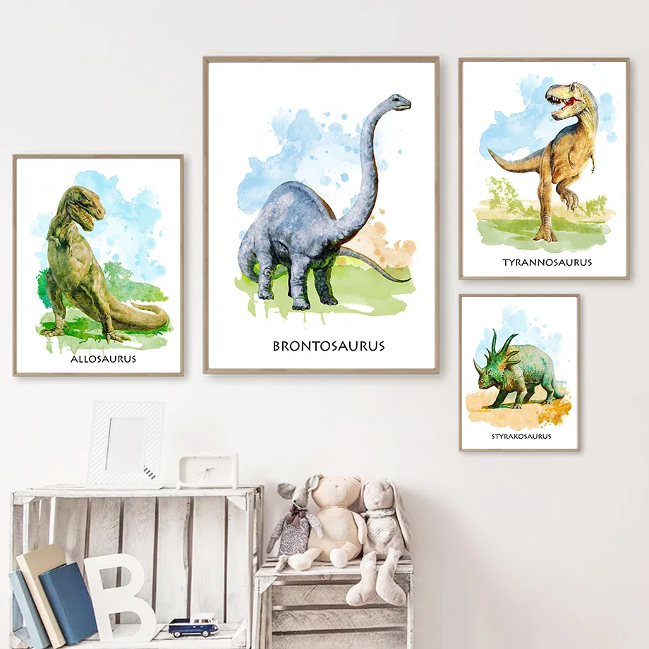 Настенная картина для детской комнаты, холст с рисунком Юрского периода, динозавра, животные, скандинавские плакаты и принты, настенные картины для мальчиков, украшение для детской спальни