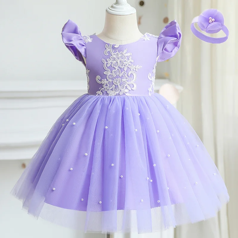 Детское кружевное платье-пачка с цветочной вышивкой и бантом