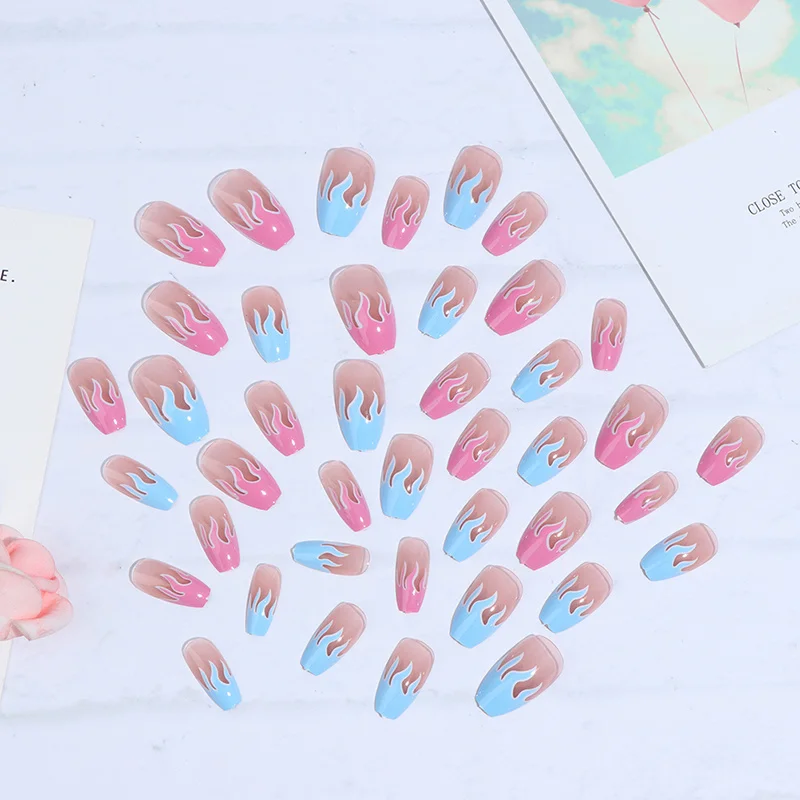 24 шт поддельные ногти с клеем Стразы длинные съемные французские палочки Гвозди гроб пламя пресс на ногти искусство DIY Маникюрный Инструмент