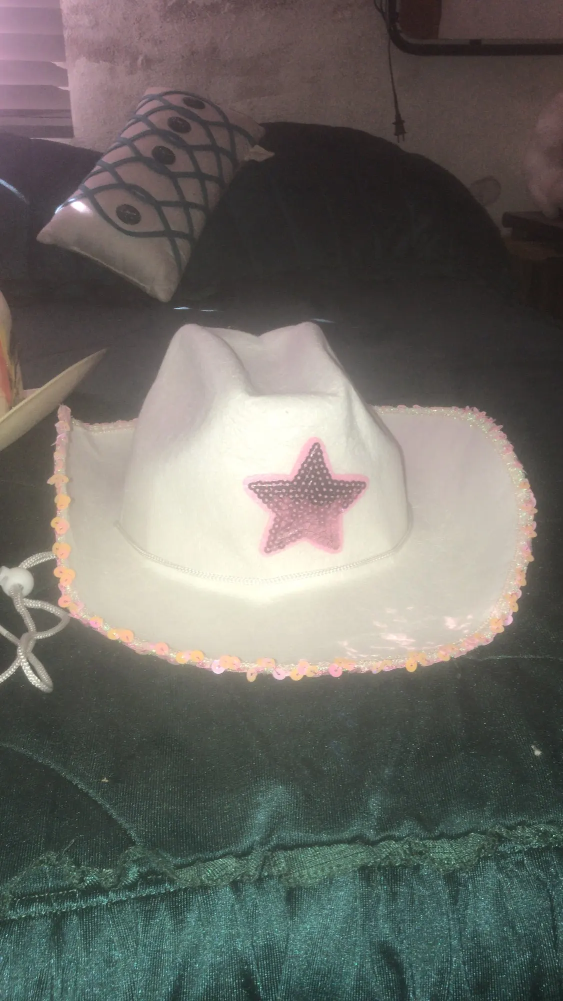 Шляпа хорошая, это не лучший материал, но это очень хорошо по цене! Единственная плохая вещь в том, что они отправляют его в простой сумке, поэтому он прибыл плохо обработанным, кроме того, клей на сумке застрял на блестке шляпы и оторвался. I still Like it. Я постараюсь это исправить :)