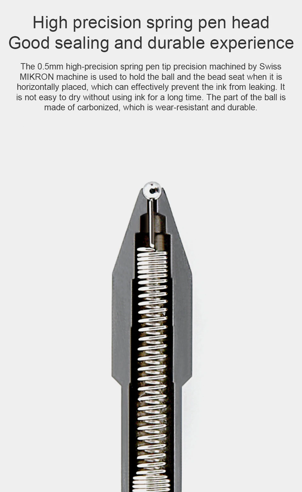 Импортный Наполнитель из Швейцарии: Плавная запись и защита от пятен, выдвижной и многоразовыйИмпорт из Японии, чернила: гладкие, насыщенные черные чернила для сильного впечатления 0,5 мм Классическая приковывающая взгляд привлекает razor-sharp, последовательных линий 9,5 мм контурная ручка для повышенного комфорта и управленияБез крышки, больше удобства.Цельнометаллический точность соединительных деталей, 50000 раз вращение срока службы