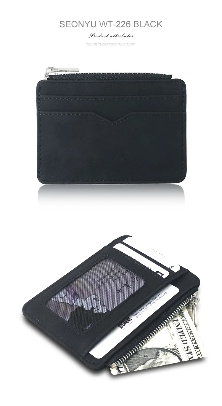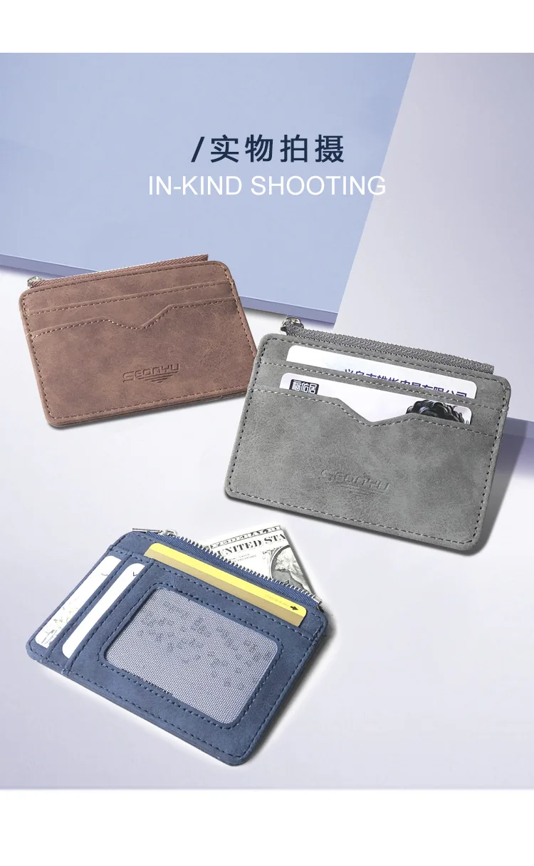 Мужской кошелек для карт, короткий Матовый кожаный Ретро кошелек для нескольких карт из матовой ткани, новый минималистичный прозрачный Кошелек для монет