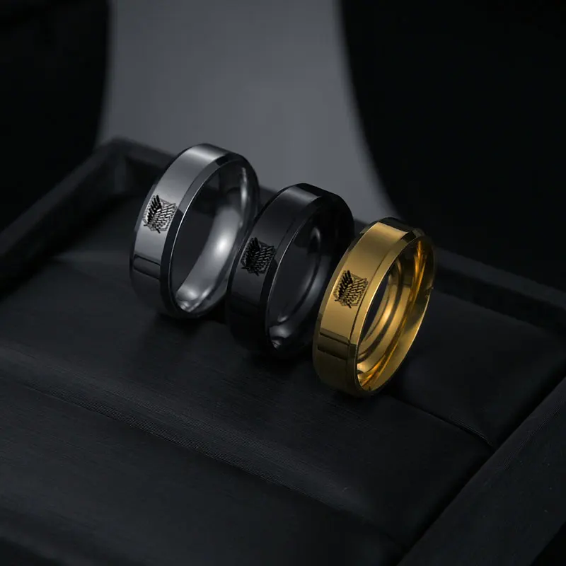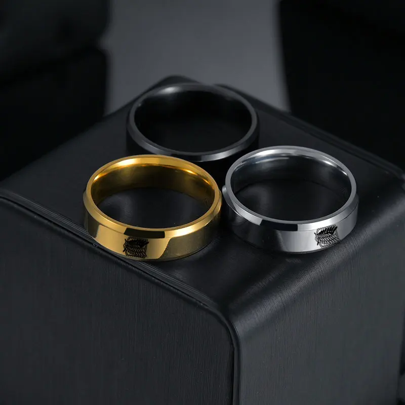 Японское аниме, атака на титанов, модные простые мужские обручальные кольца из нержавеющей стали 6 мм, модные ювелирные изделия