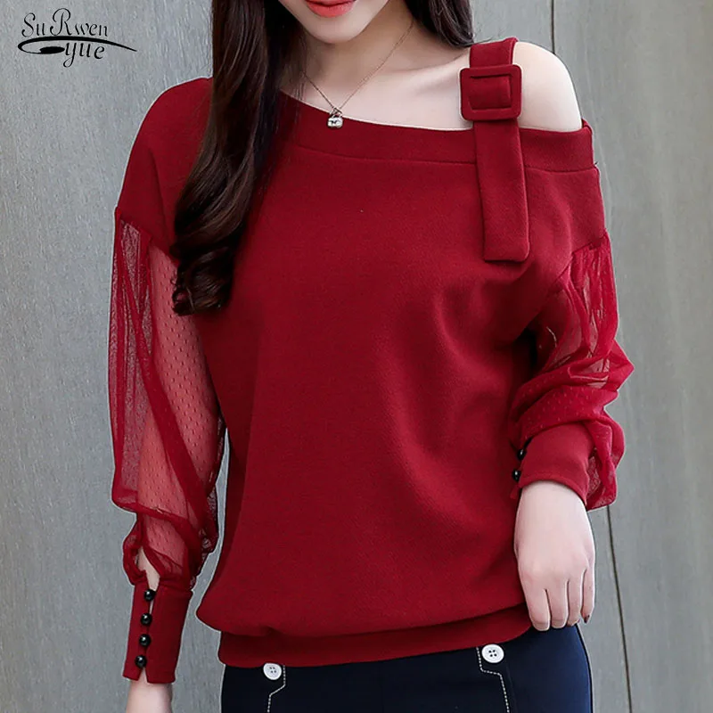 Женская блузка с открытыми плечами, шифоновая блузка с открытыми плечами, модель 2022 на весну, 1224