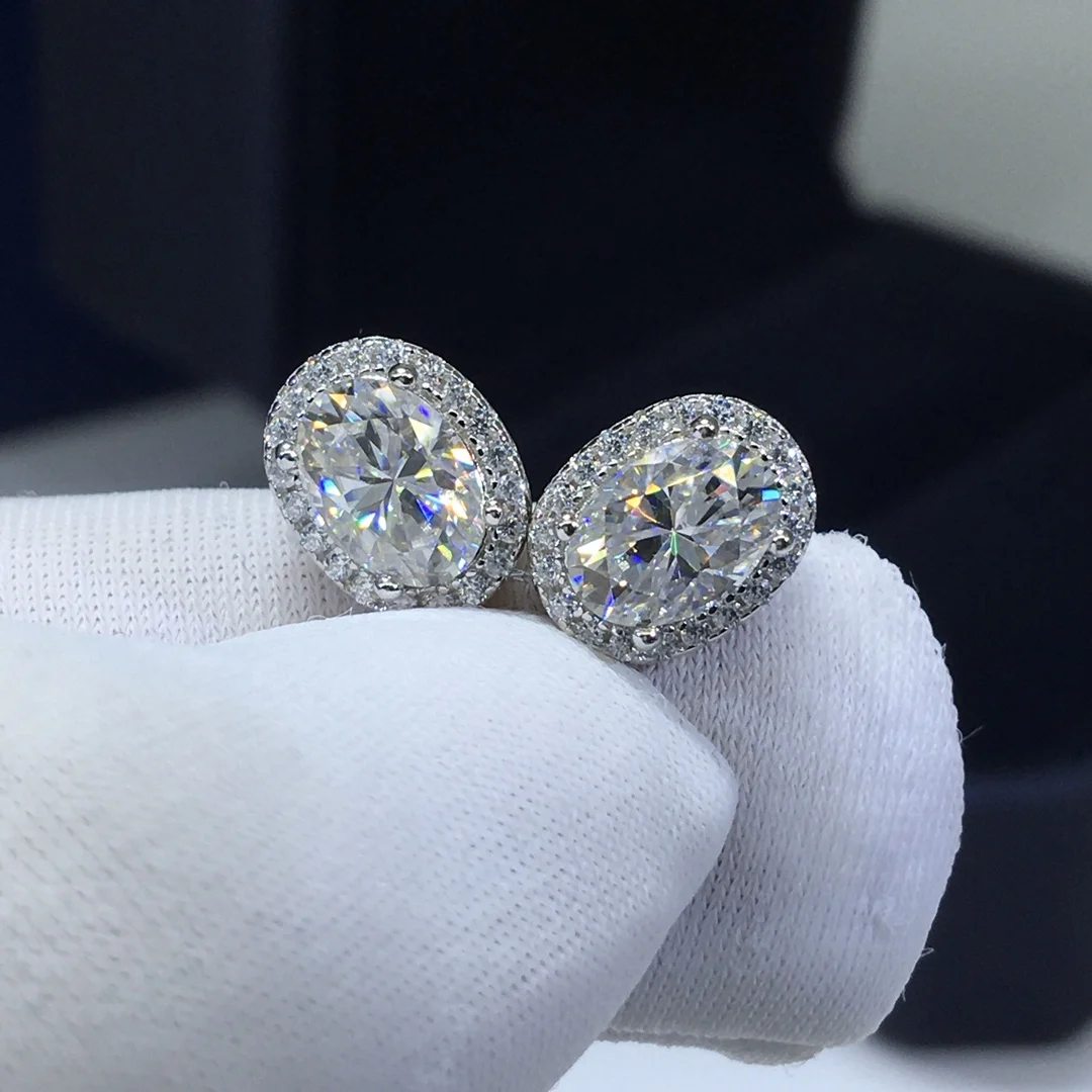 Серебро 925 пробы, оригинальные бриллиантовые овальные серьги с огранкой в виде яйца диаметром 2 карата, драгоценные камни, ювелирные изделия