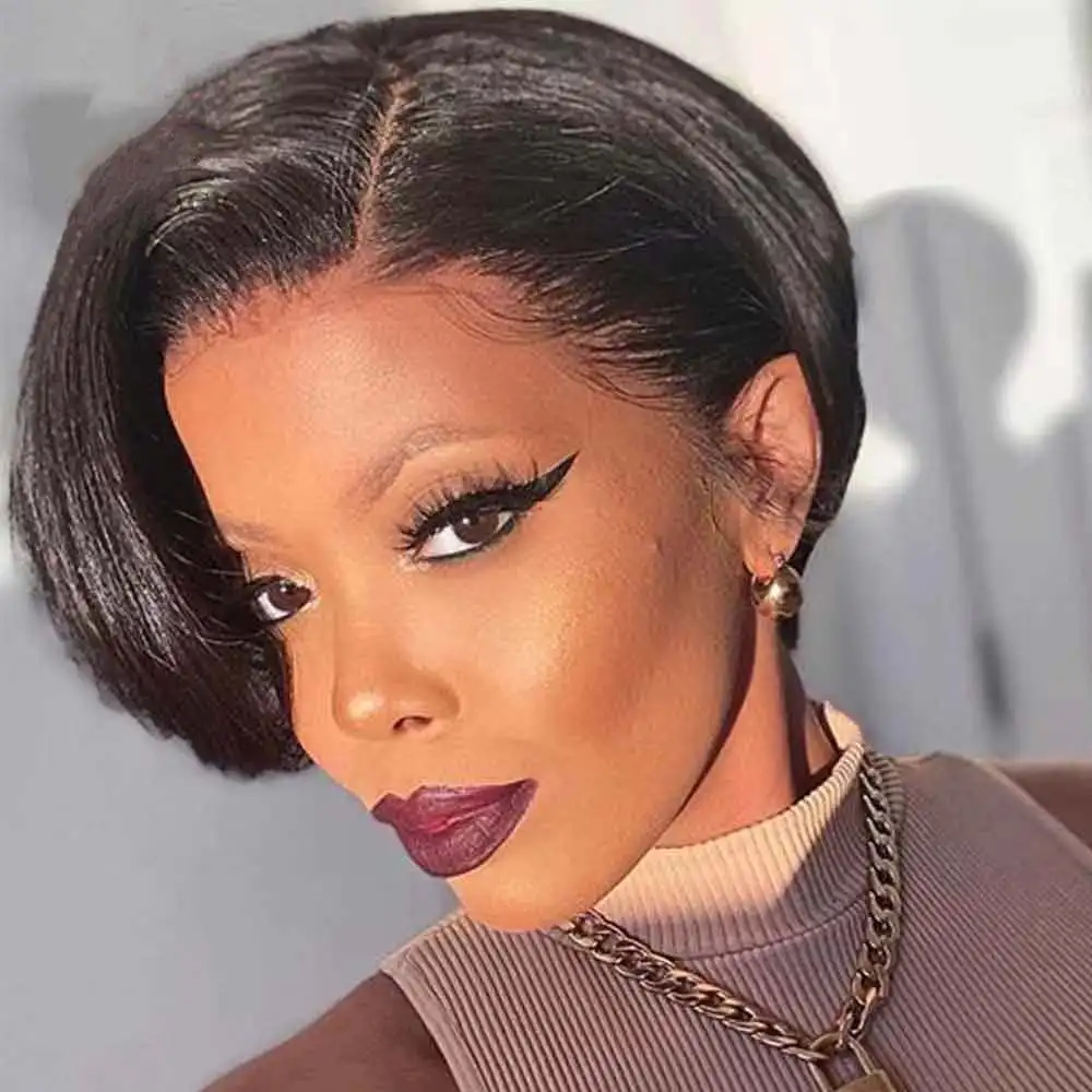 Парик с коротким вырезом фальшивой, парик из человеческих волос, парики из прямых человеческих волос для черных женщин, парик из прямых волос с машинной обработкой