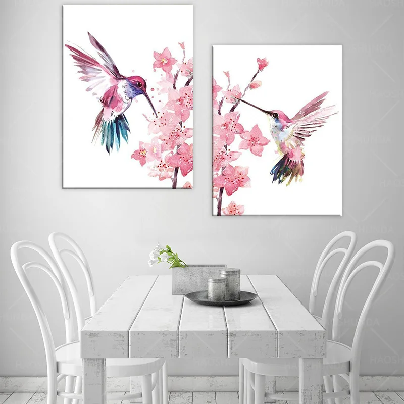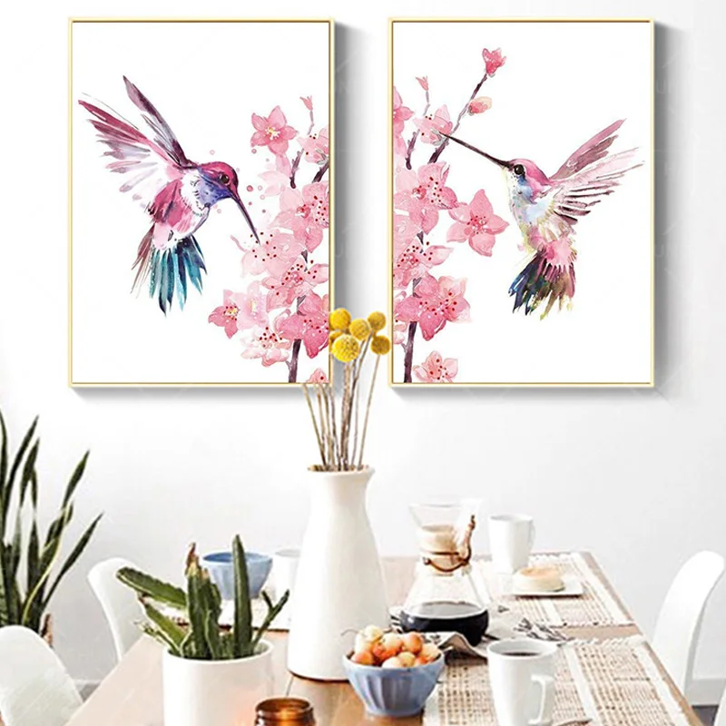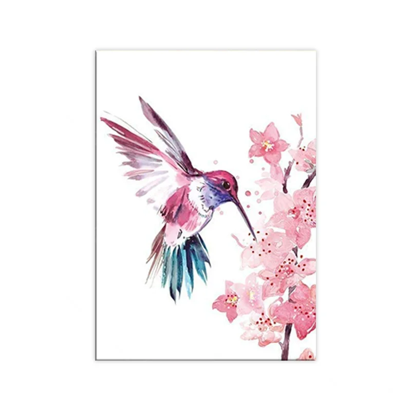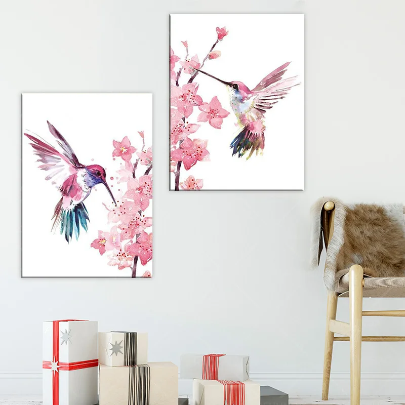 Печать Колибри плакат Колибри на стене Сакура искусство вишневого цветка для девочки детского сада художественный холст для дома