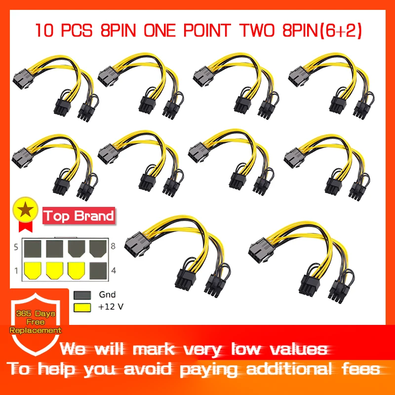 10 шт., 8-контактный разъем PCI Express на Dual PCIE 8 (6 + 2), кабель питания 20 см, видеокарта для материнской платы, PCI-E GPU, кабель питания, сплиттер
