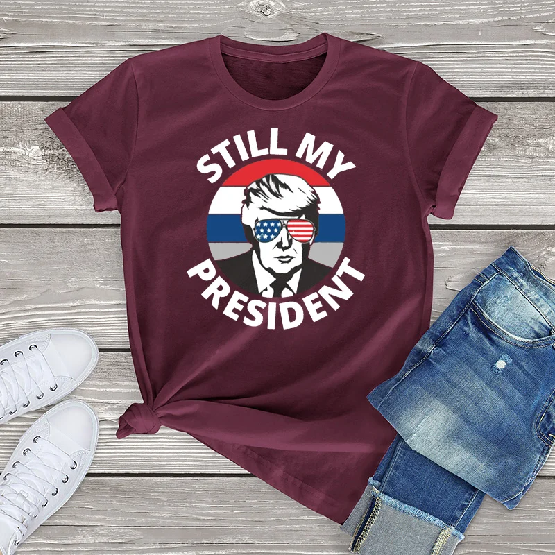 Дональд Трамп - все еще мой президент Футболка Мужская женская одежда 100% хлопок Солнцезащитные очки Рубашка с рисунком анти-Байдена Винтажные футболки унисекс с короткими рукавами Крупногабаритная уличная одежда XS-3