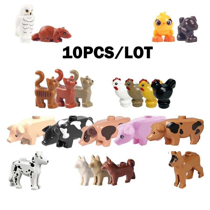 Конструктор 10 шт.лот, животные, милый медведь, собака, динозавр, Сова, свинка, курица, утка, модель, креативный аксессуар, детская игрушка-пазл, подарок