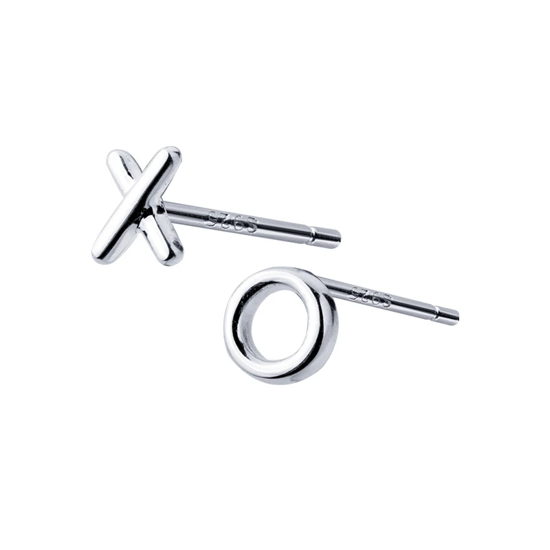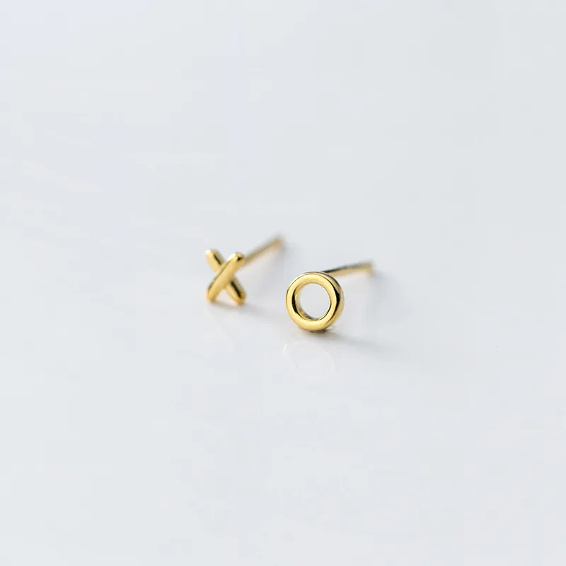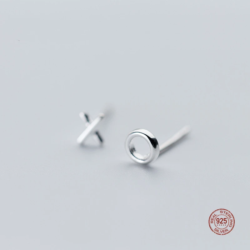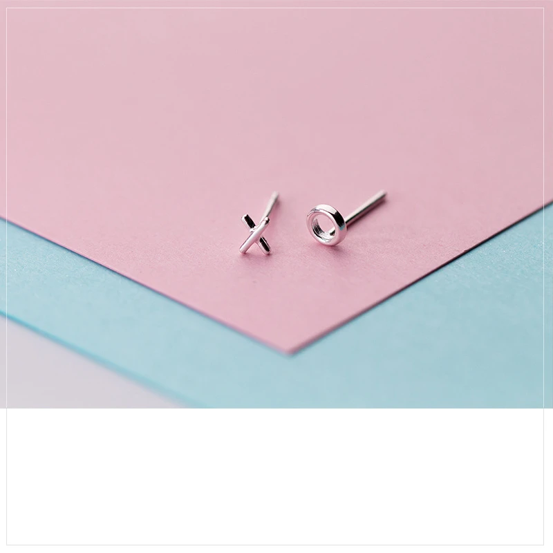 LKO Настоящее серебро 925 пробы милые асимметричные серьги-гвоздики X и O для женщин и девочек подарки на день рождения студенческие ювелирные аксессуары