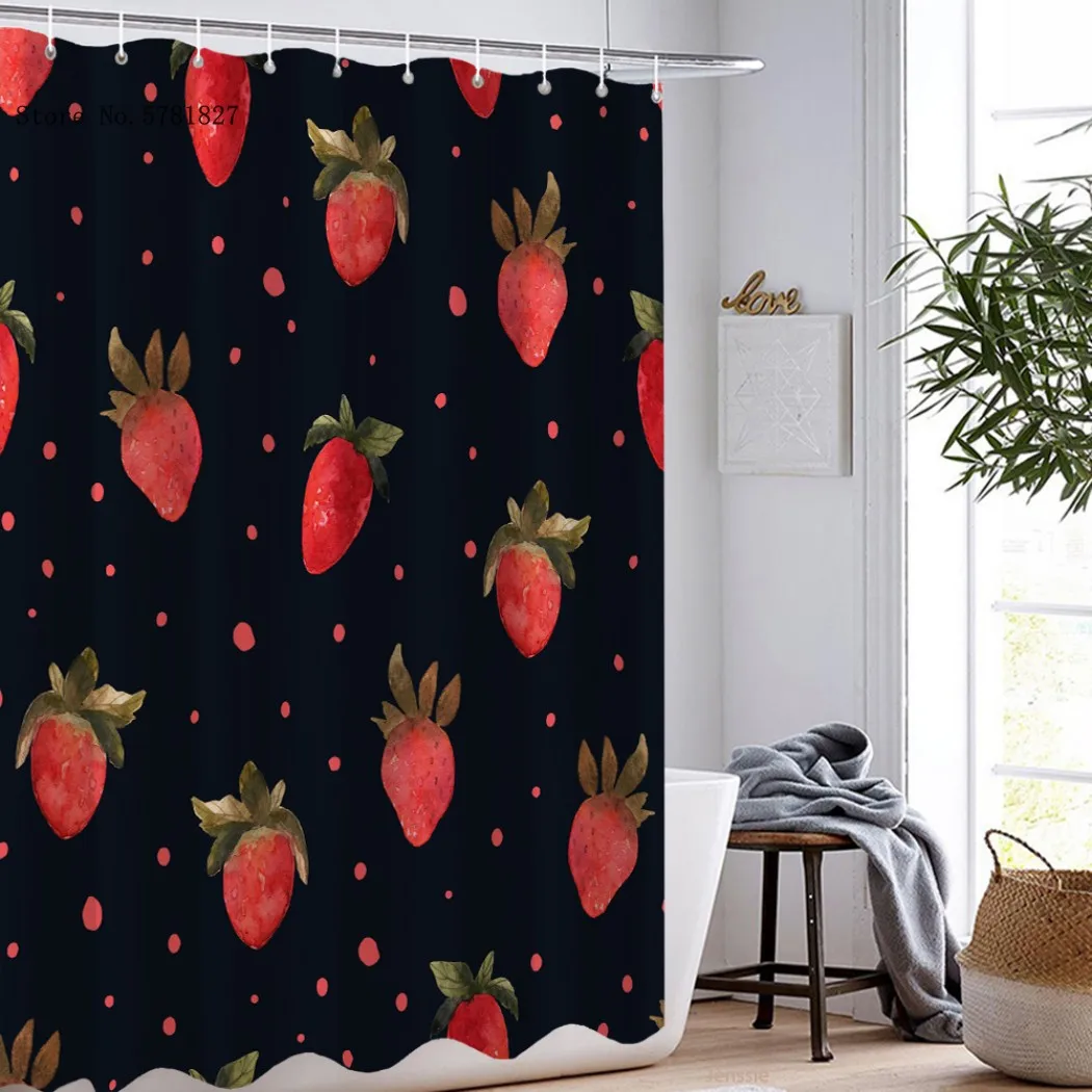 Занавески для душа с изображением растения персика, клубники, Мультяшные водонепроницаемые занавески из полиэстера, милые декоративные занавески