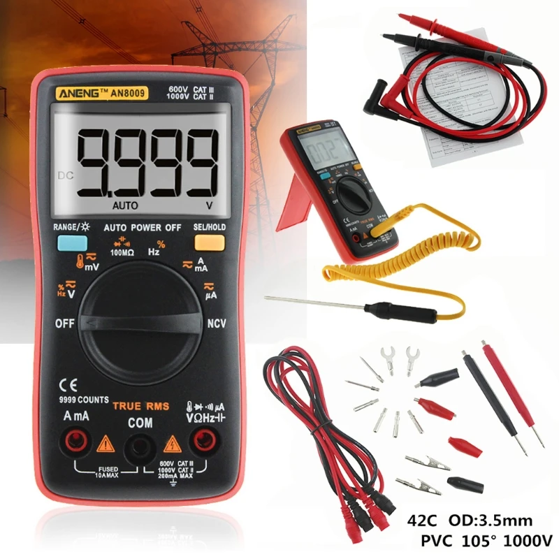 AN8009 мультиметр Цифровой Авто Диапазон 9999 отсчетов с подсветкой...
