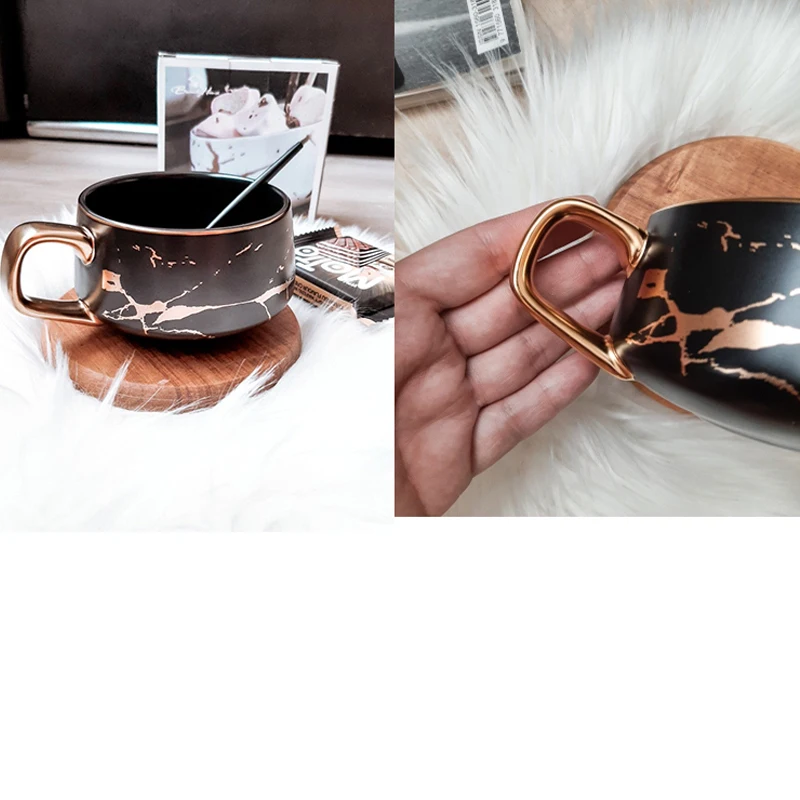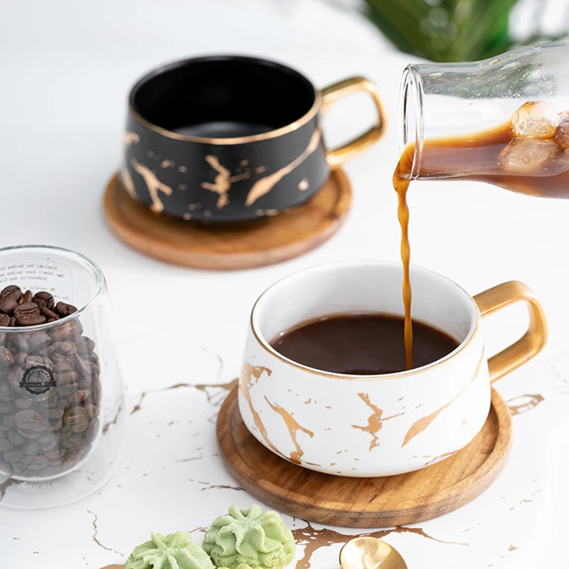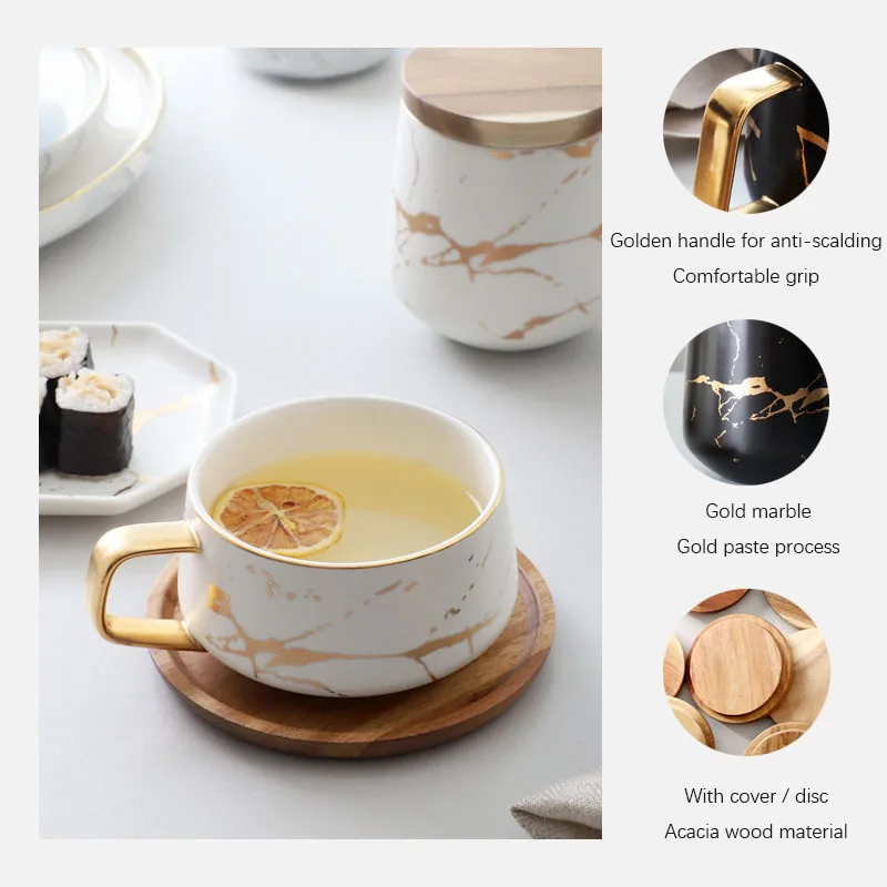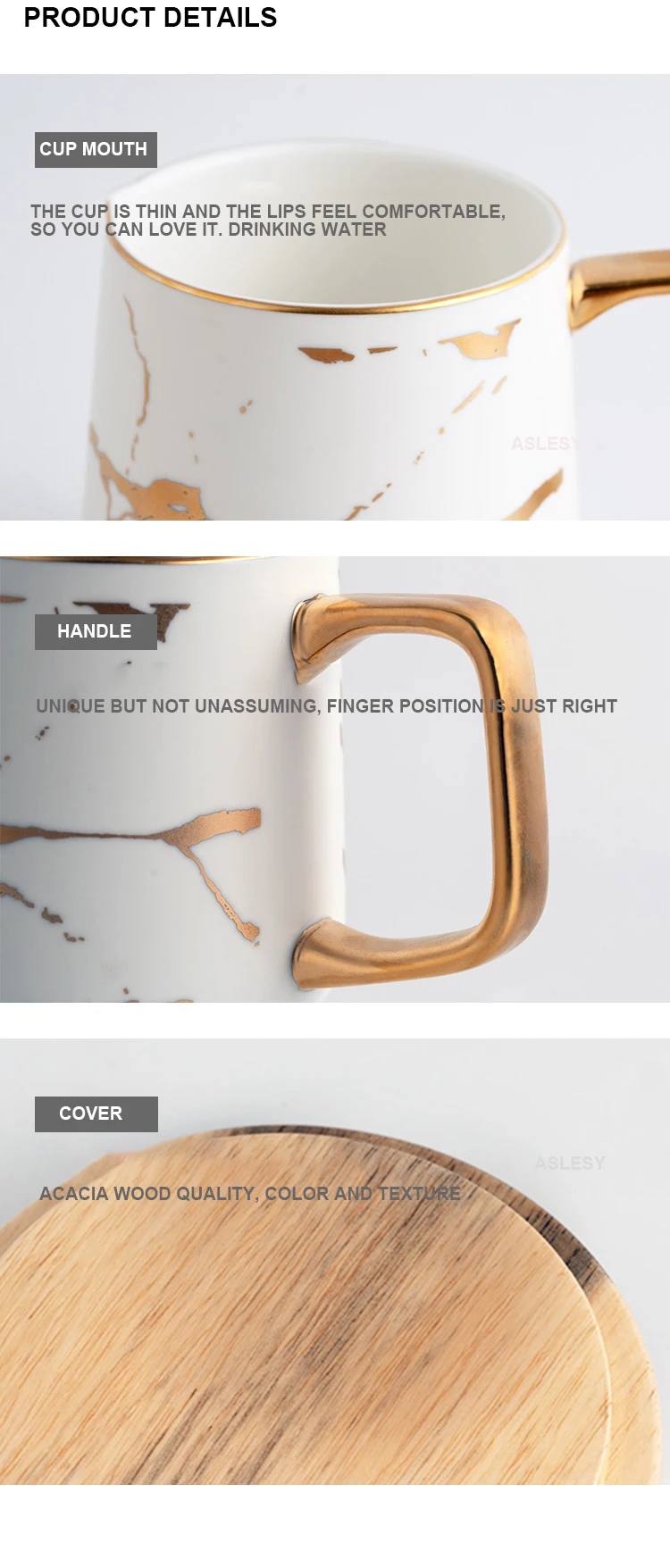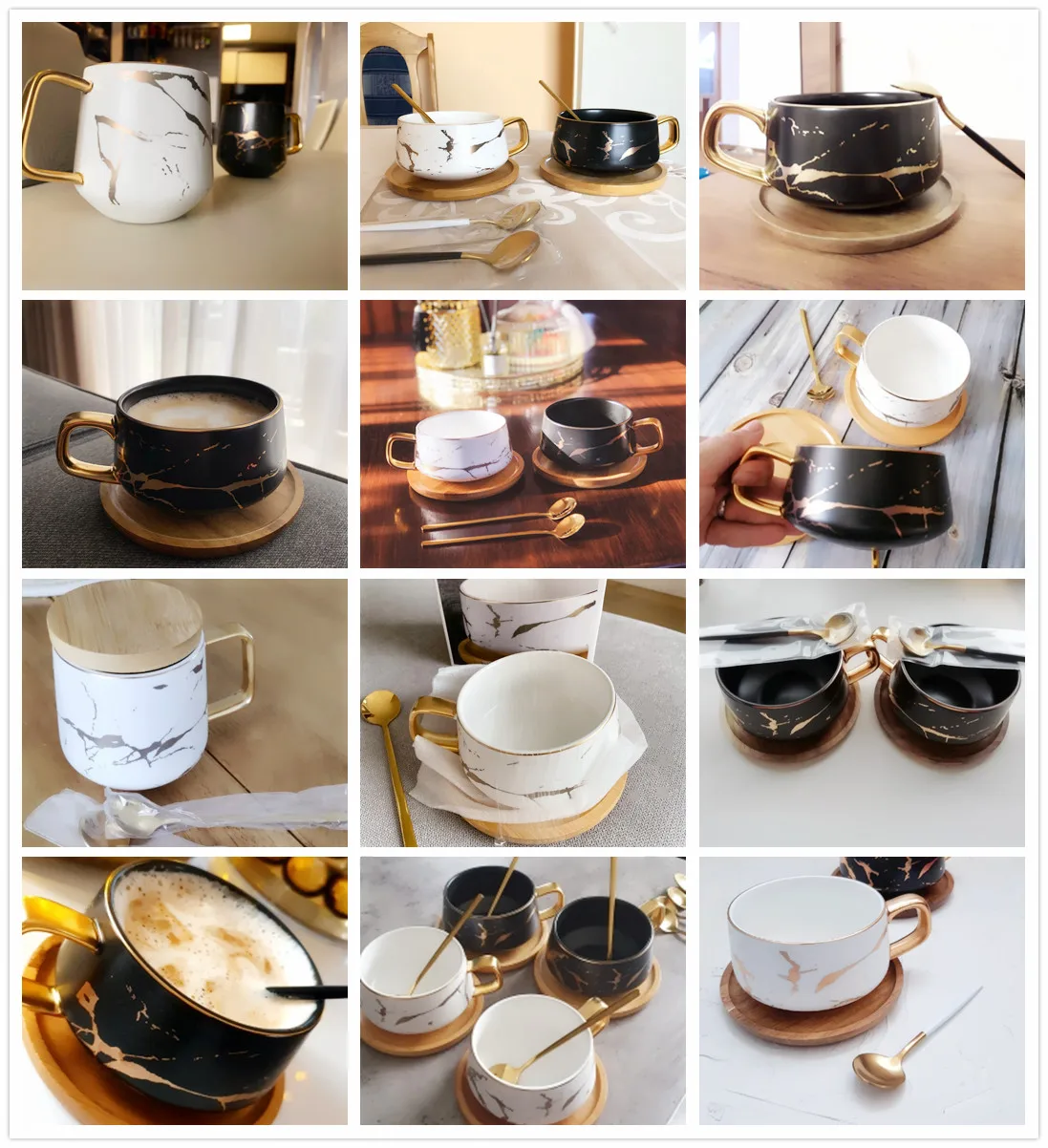 Керамическая кружка для кофе, в скандинавском стиле, с узором, с деревянной крышкой