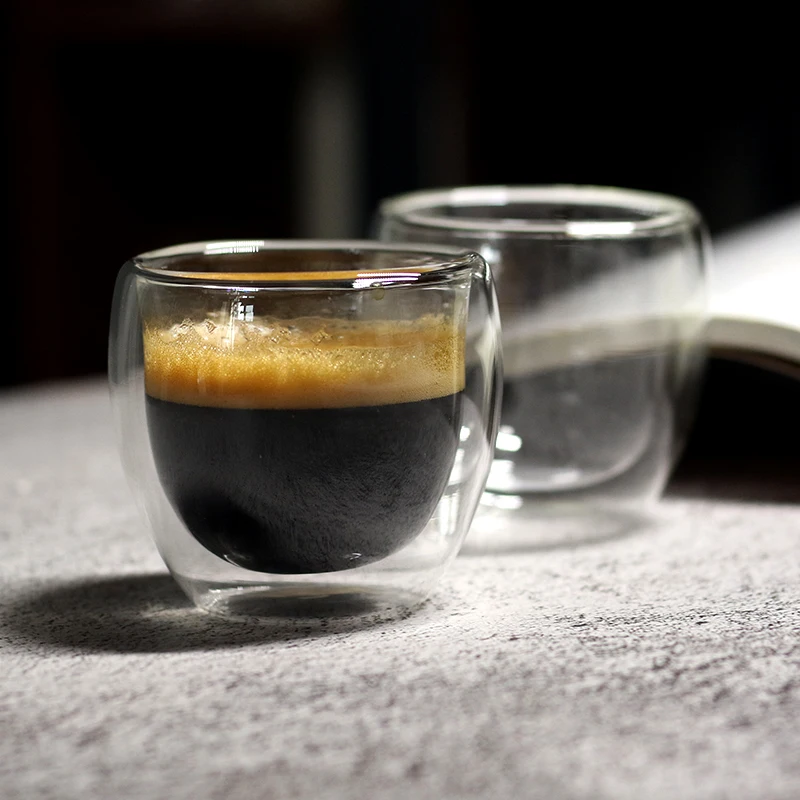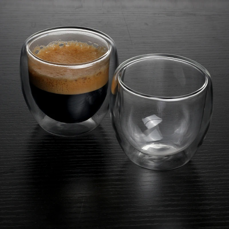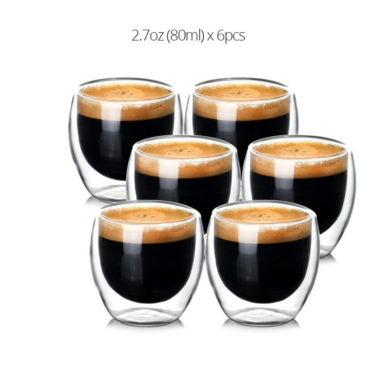 Набор из 6 штук Термостойкого Боросиликатного стекла с двойными стенками для кофейных чашек эспрессо 80 мл