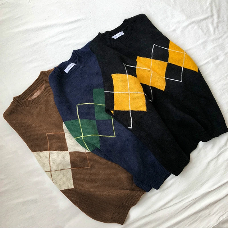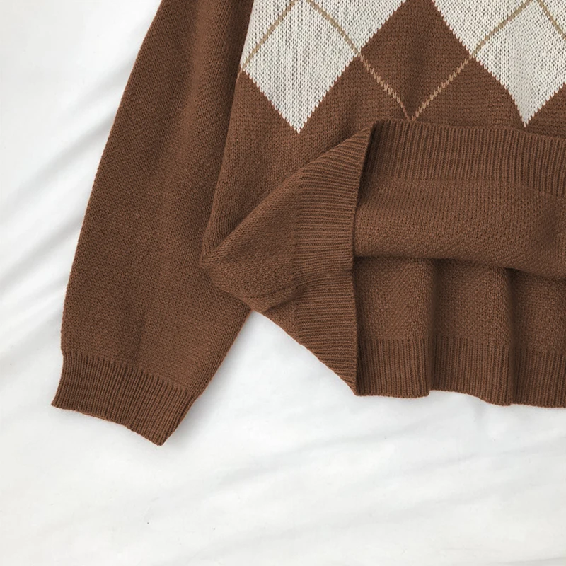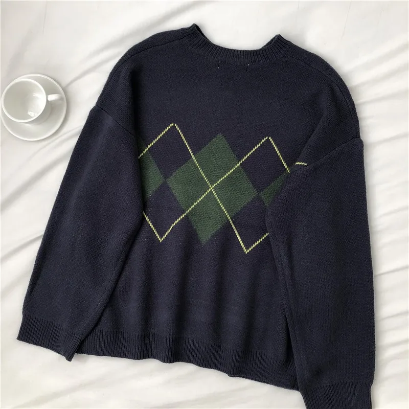 Женский вязаный свитер Argyle, осенне-зимний пуловер оверсайз с кру...