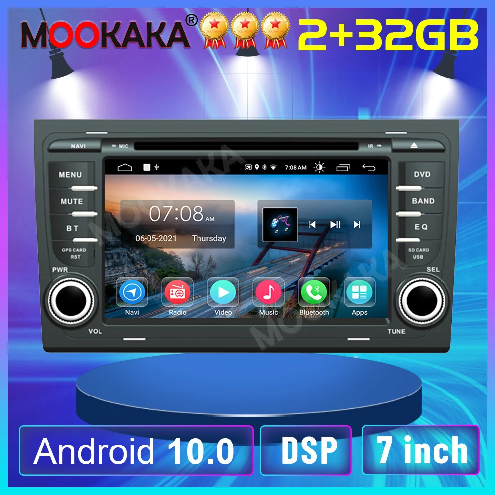 Автомобильный DVD-плеер 7 дюймов, Android 10,0, 2 ГБ + 32 ГБ, для Audi A4 B8 S4 B6 B7 RS4 8E 8H B9 Seat Exeo 2002-2008, Автомобильный GPS навигатор, головное устройство, радио