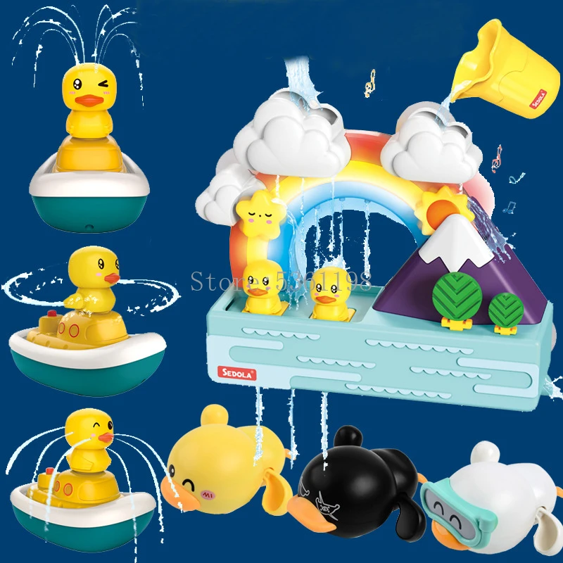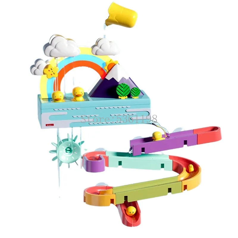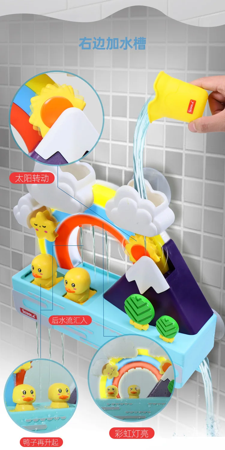 Детская игрушка для ванной, электрическая Радужная игрушка для душа с подсветкой, трубопровод, утка, горки, музыка, ванная комната, развивающая водная игра, игрушка для детей