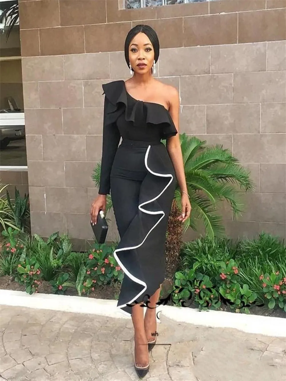 Коктейльные платья с юбкой-годе, черного цвета, на одно плечо