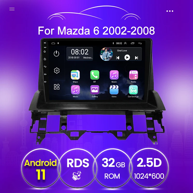 Автомобильный мультимедийный плеер для Mazda 6 2002 2003 2004 2005 2006 2007 2008 Android 11 2 ГБ + 32 ГБ мультимедийный автомобильный DVD Wi-Fi навигация