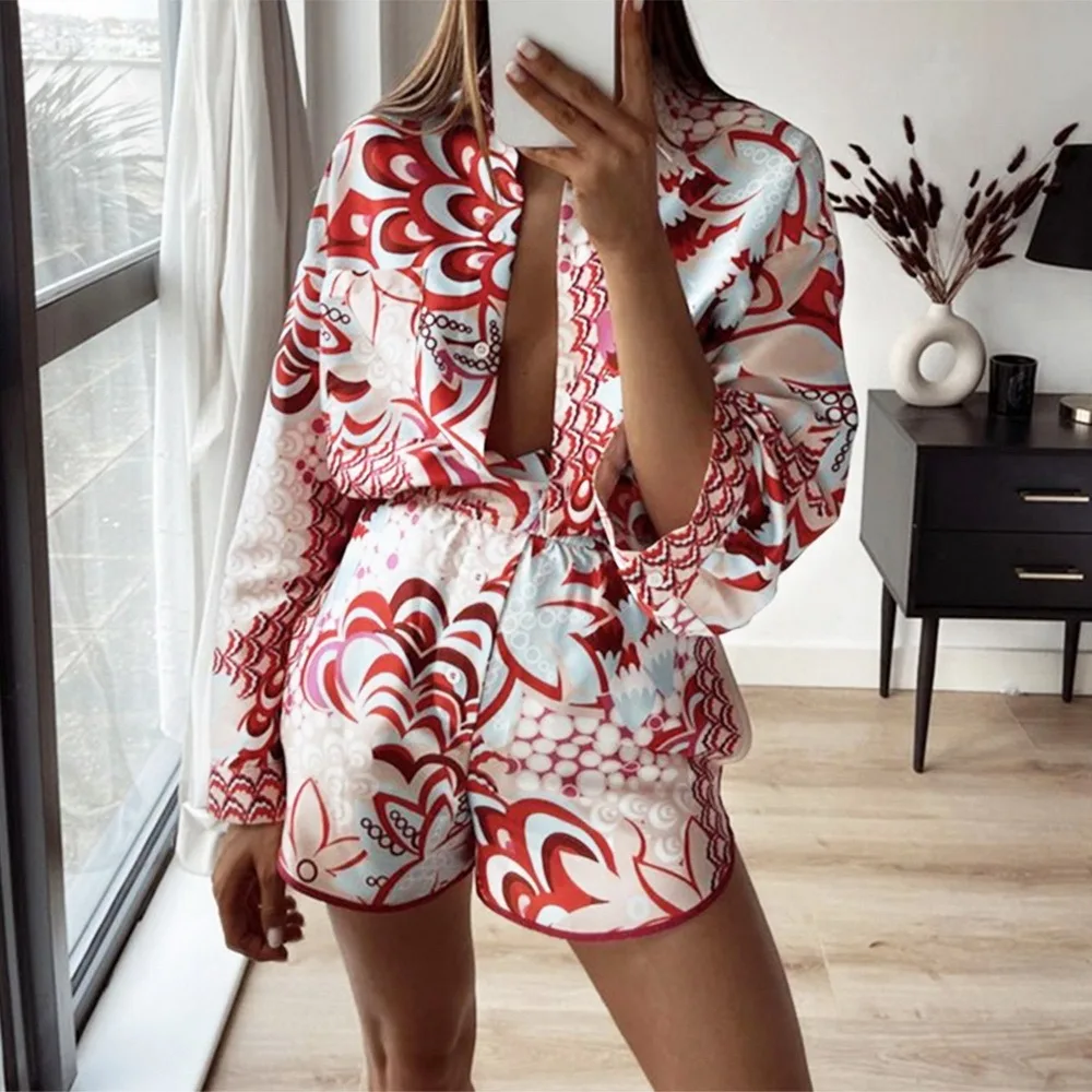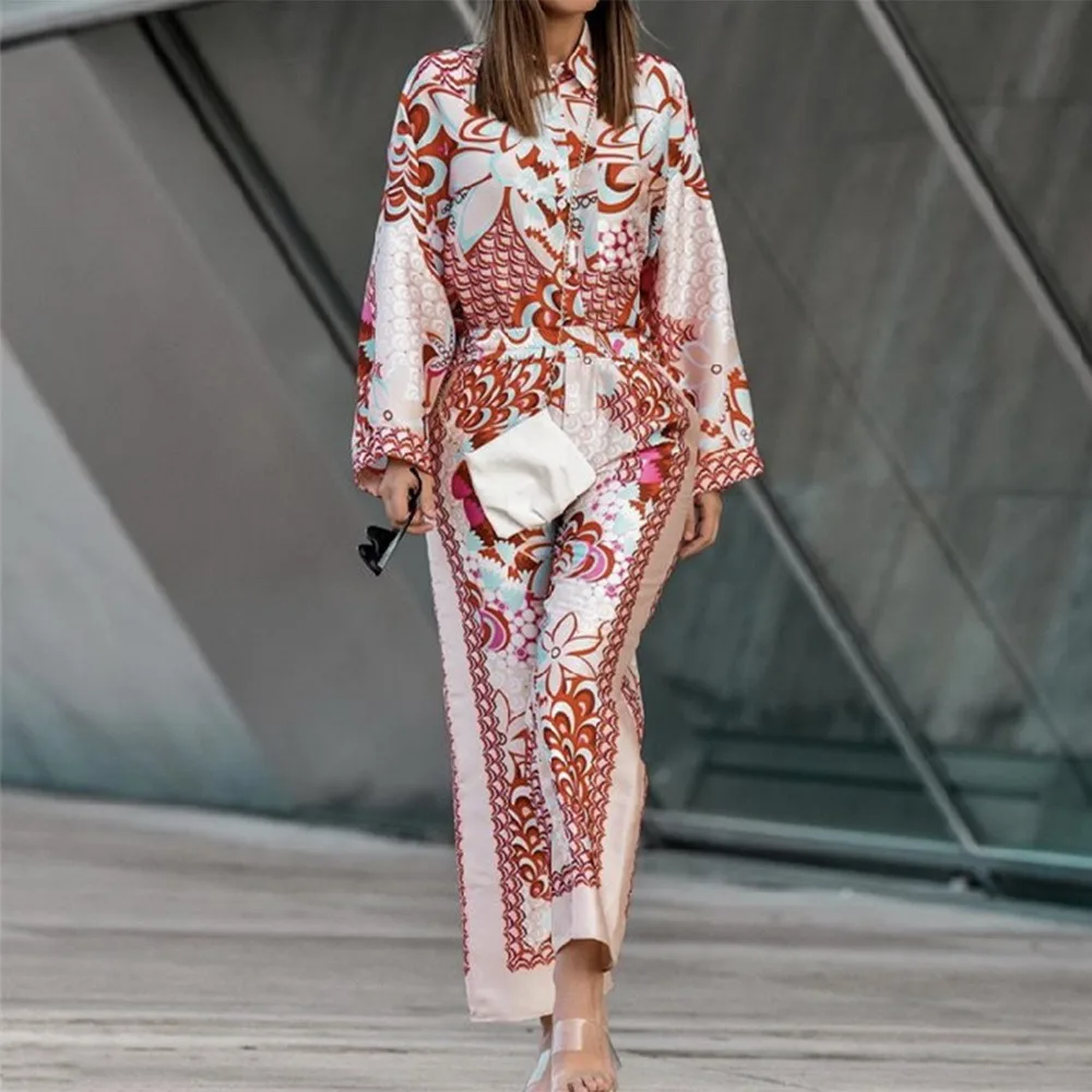 2021 комплект из двух предметов, женская блузка с принтом и брюки, ...