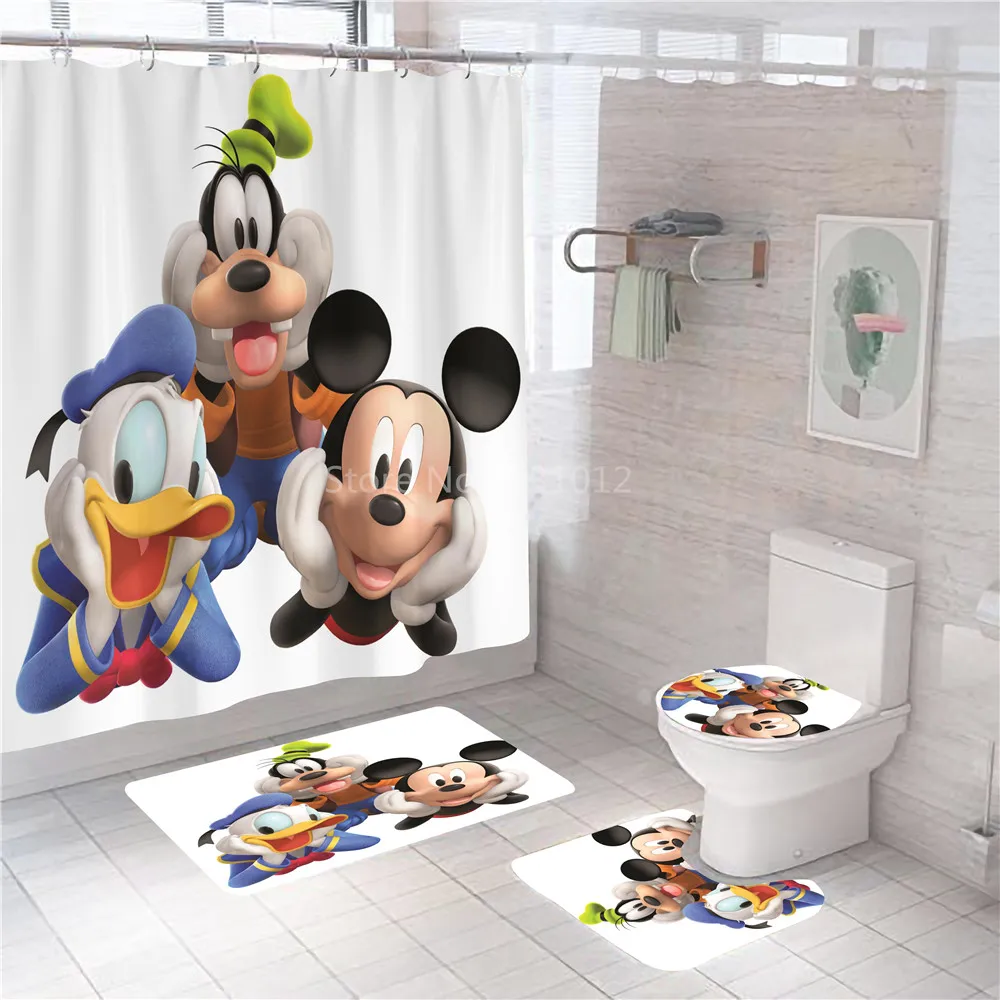 Набор водонепроницаемых занавесок для ванной комнаты с милым розовым Минни Маусом, набор нескользящих ковриков для ванной комнаты, коврик с крышкой на подставке, коврики для туалета