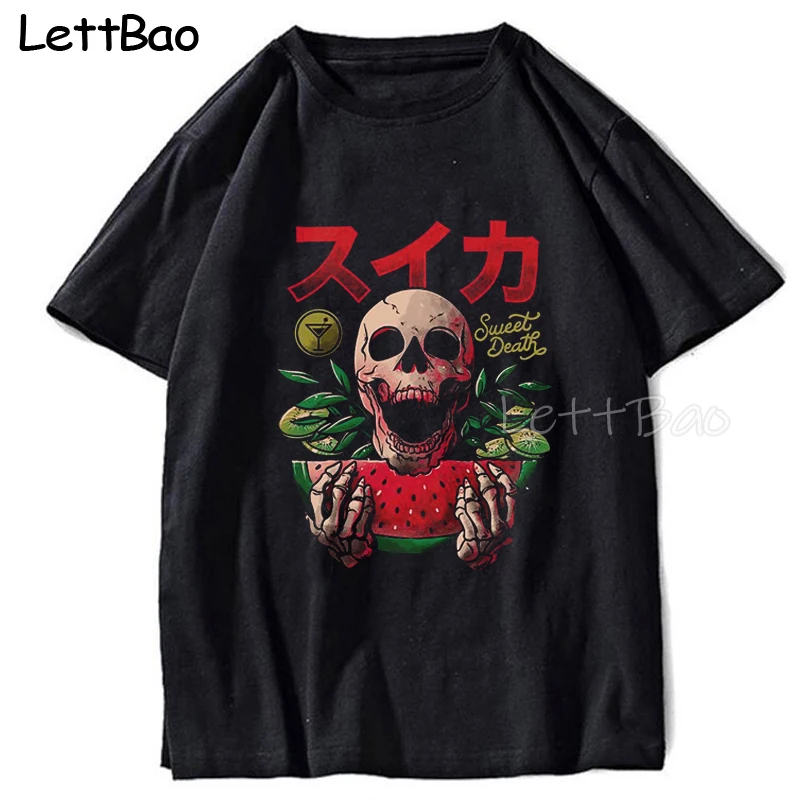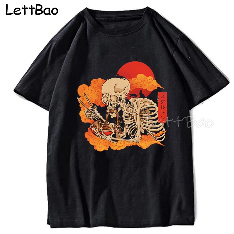 Футболка Yokai мужская с принтом черепа и рамен, модная винтажная тенниска с коротким рукавом, уличная одежда в стиле панк, на лето