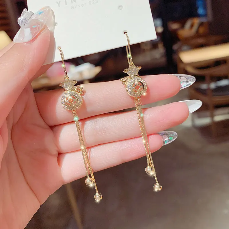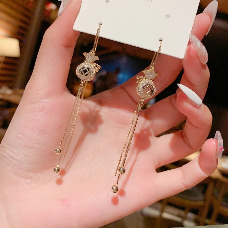 Новинка 2021 в китайском стиле полое кошелек ушной линии трендовые модные серьги в Корейском стиле длинные серьги с кисточками подарок женские ювелирные изделия