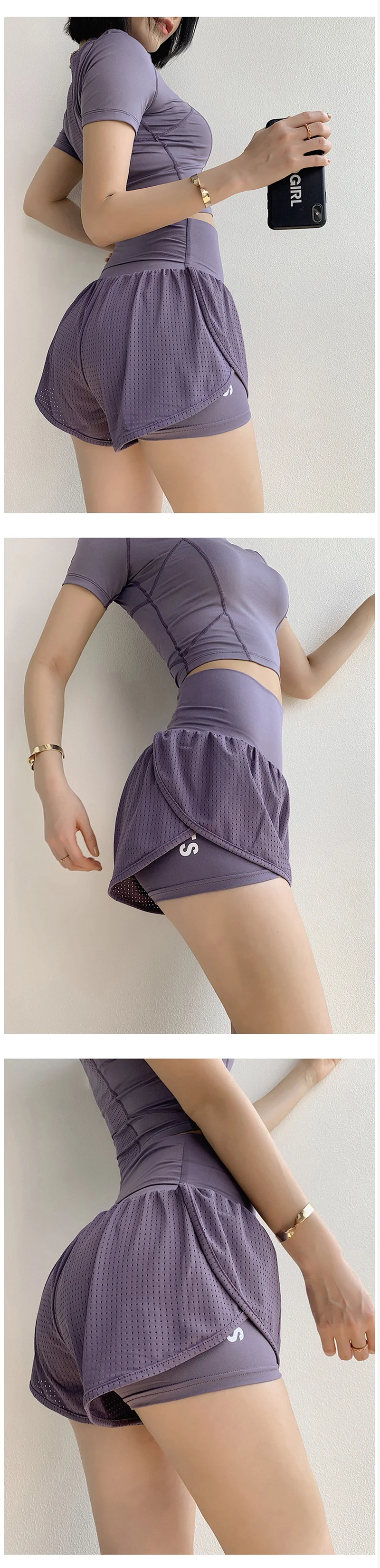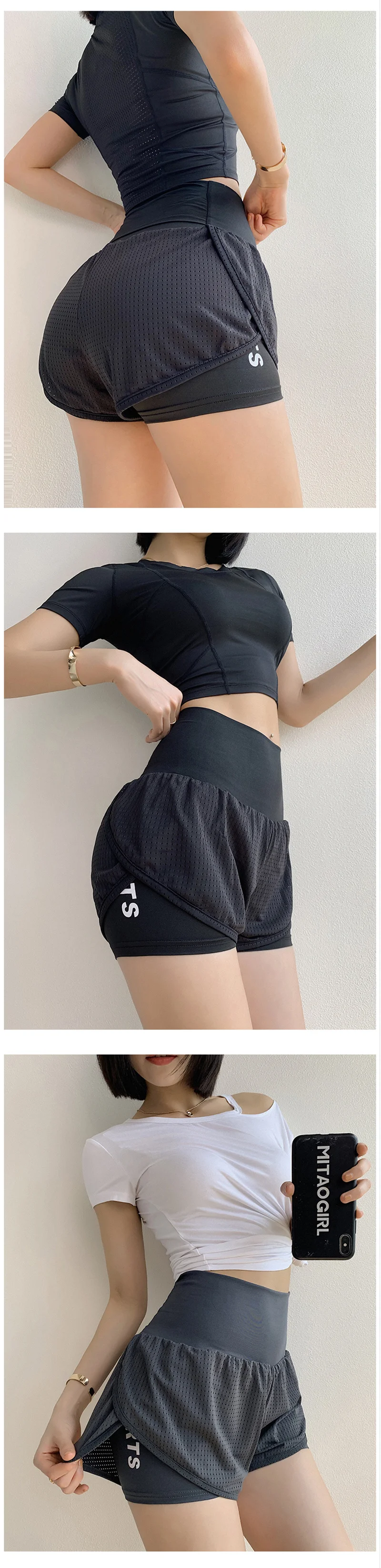 Шорты женские 2 в 1, с высокой талией, спортивные, быстросохнущие