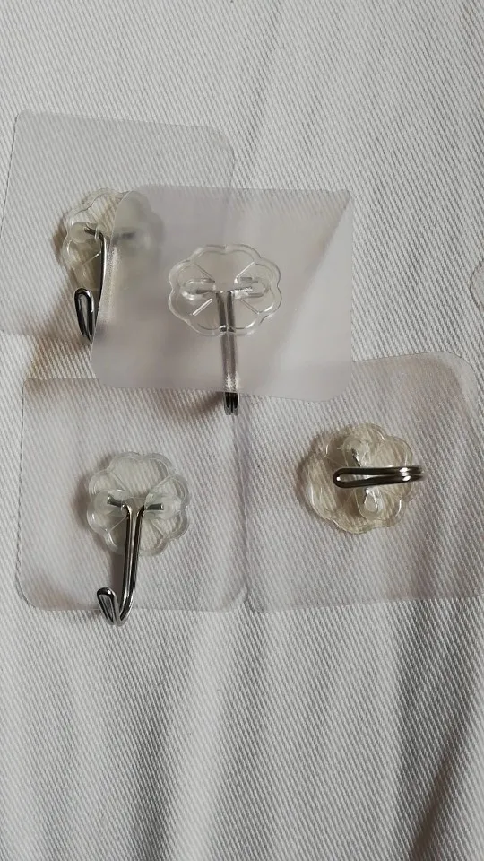 Крючки приклеились, посмотрим сколько про висят. Не прозрачные а голубоватые.