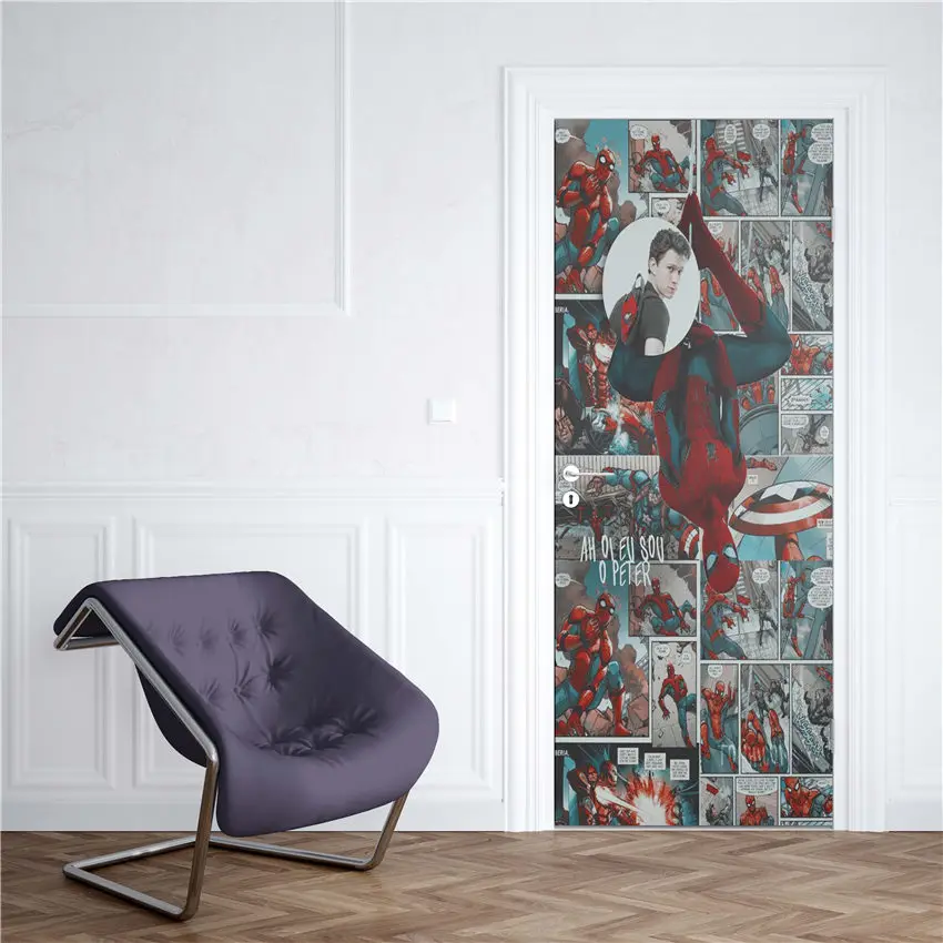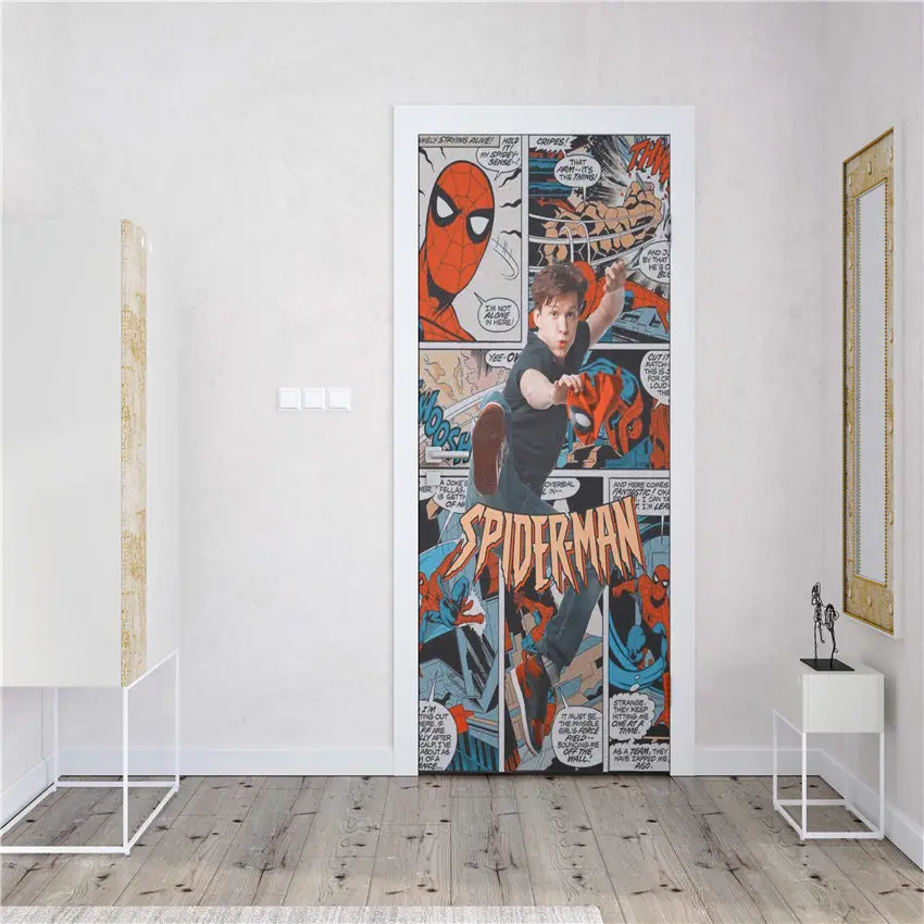 Обои с супергероями marvel, Человек-паук, самоклеящаяся дверная рос...