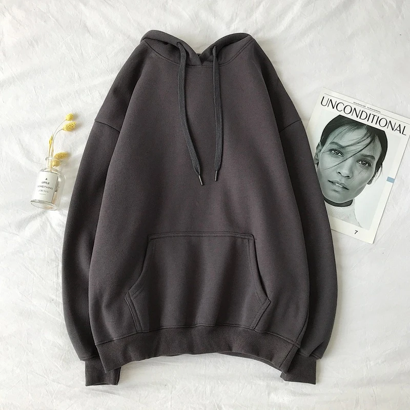Женские свитшоты, однотонный корейский женский пуловер с капюшоном,...