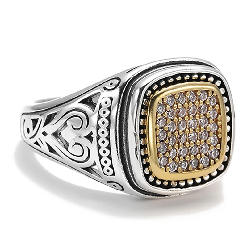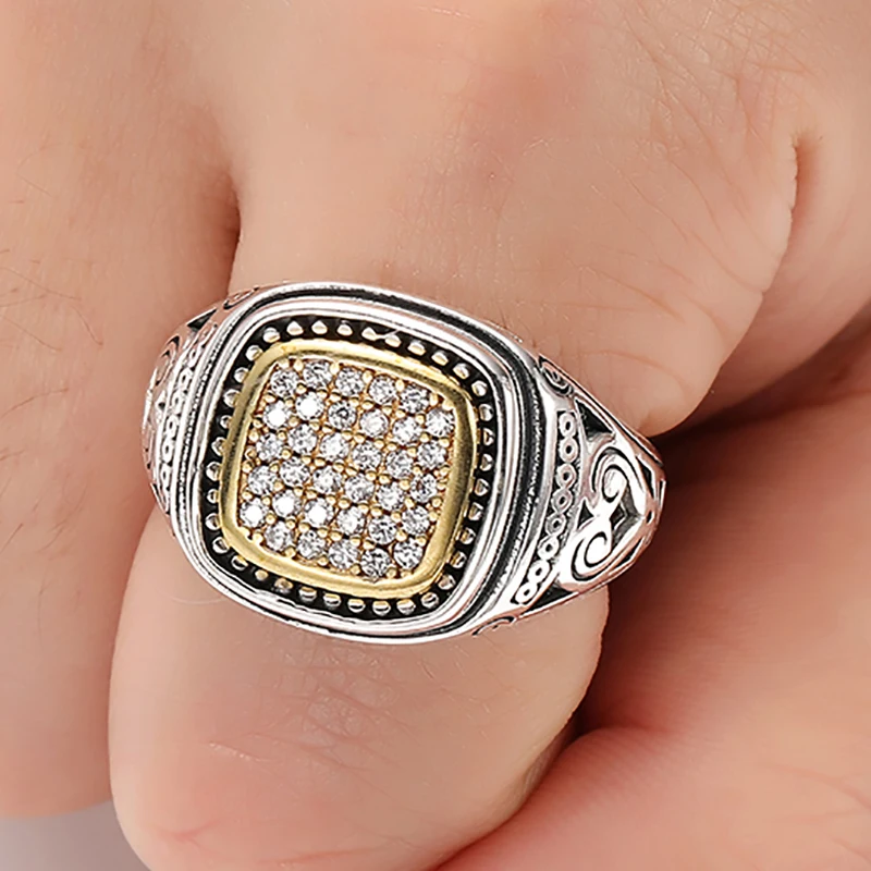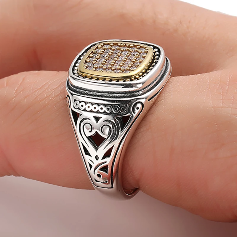 Мужское кольцо с квадратным цирконием, Винтажное кольцо с гравировкой, ювелирные изделия