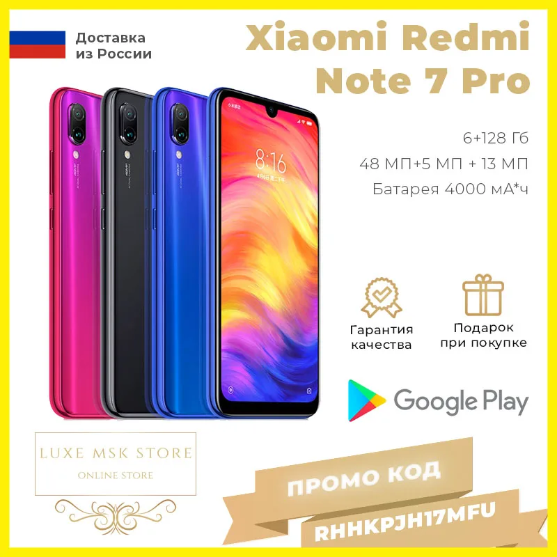 Смартфон Xiaomi Redmi Note 7 Pro 6GB128GB 6.3", 4000 mAh,48+5+13Мп,Google Play