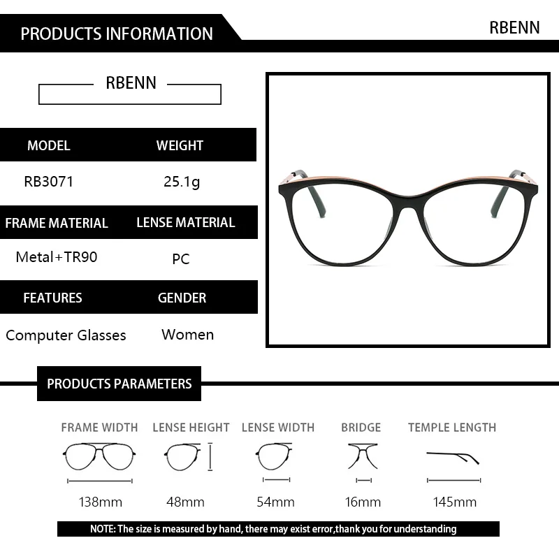 Очки RBENN в оправе кошачий глаз с защитой от сисветильник, оптические аксессуары для близорукости, TR90