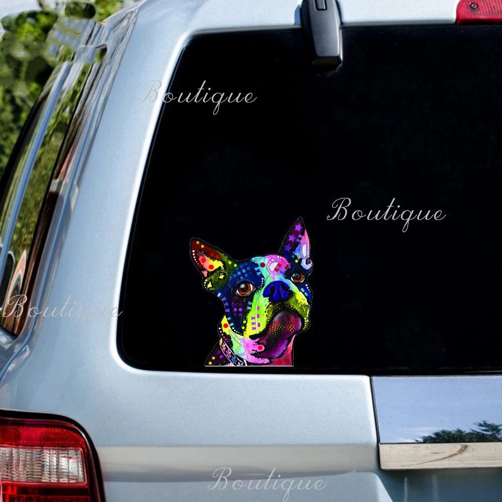 Модная наклейка для автомобиля питомца Boston Terrier, украшение для мотоцикла, наклейка для окна ноутбука, художественная виниловая наклейка, 14 см * 12 см