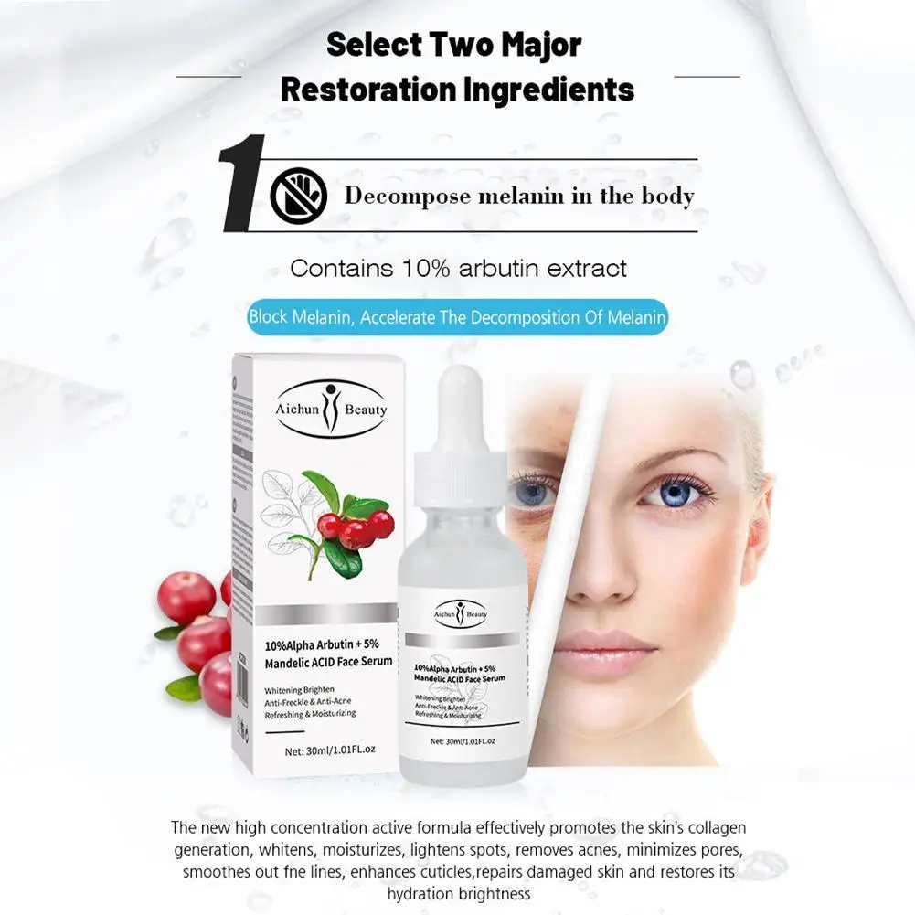 30 мл экстракт арбутина мандельной кислоты, отбеливание, увлажнение, осветление тона кожи, депигментация, улучшение глубины