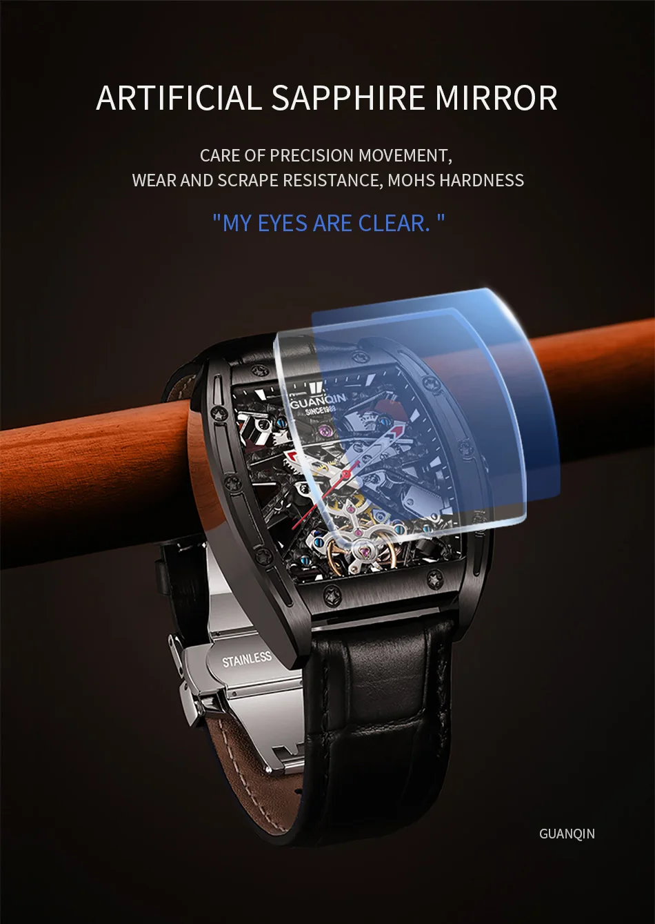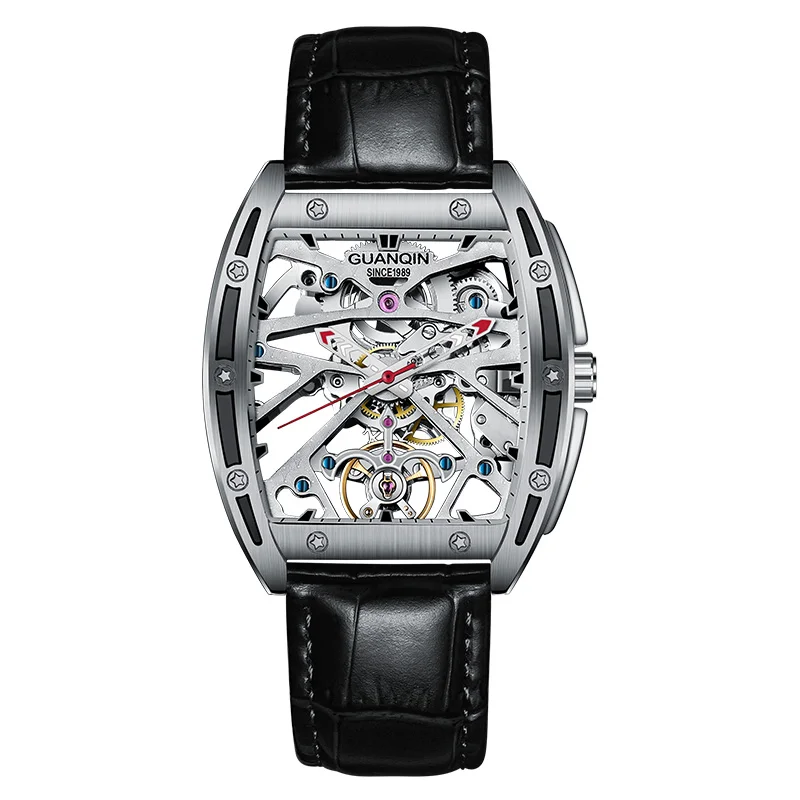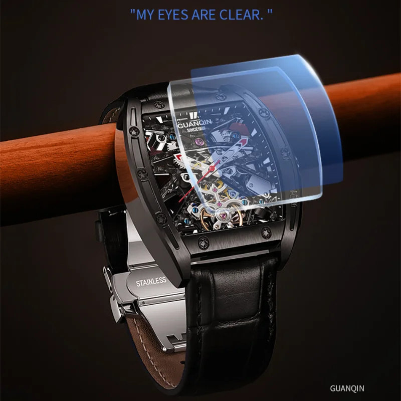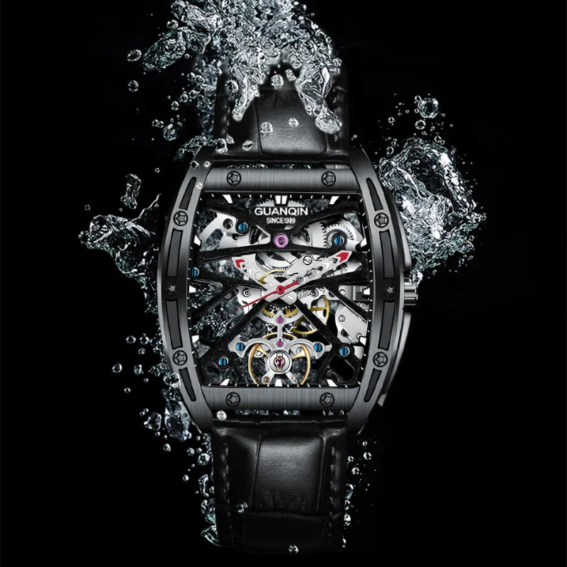 Новые оригинальные мужские часы GUANQIIN, прозрачные автоматические механические наручные часы-скелетоны, противоударные водонепроницаемые мужские часы