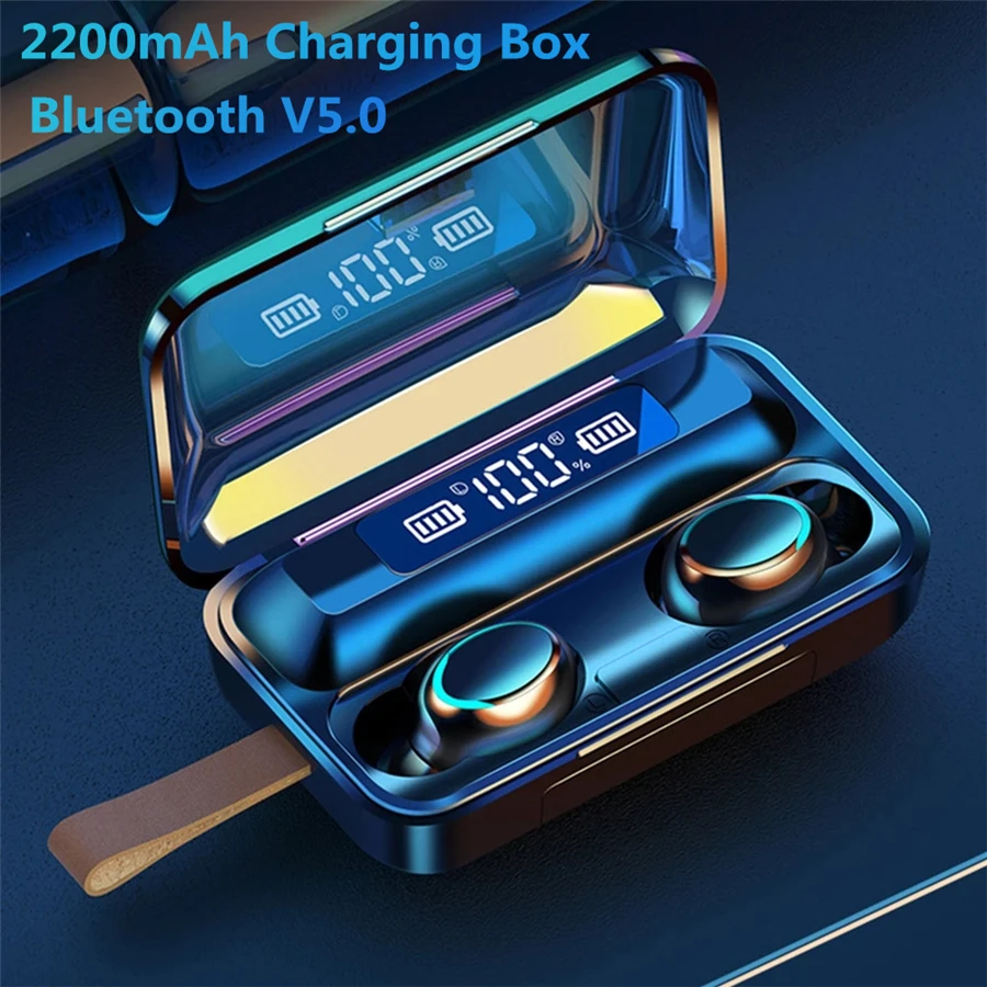 TWS Bluetooth 5,0 наушники с зарядным устройством 2200 мА ч, беспроводные наушники с микрофоном, 9D Hifi, спортивные стереонаушники, игровая гарнитура