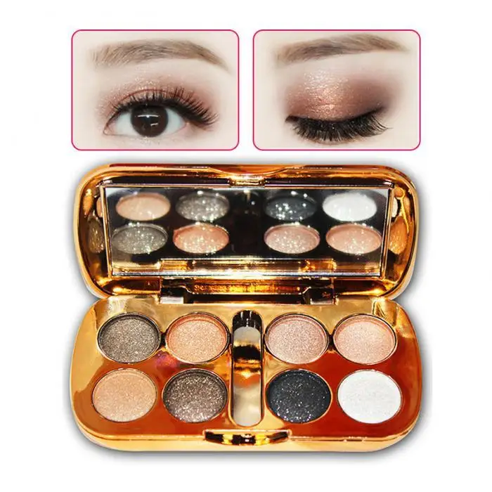 Высококачественные блестящие тени для век с кисточкой, Косметика для макияжа лица блестящие тени для век, палитра 8 цветов, тени для век, макияж для век, макияж