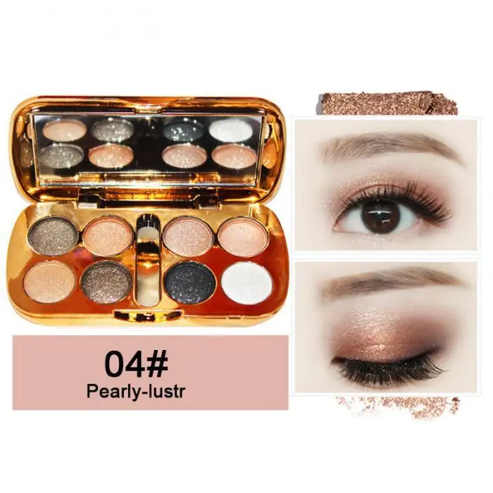 Высококачественные блестящие тени для век с кисточкой Косметика для макияжа лица блестящие тени для век палитра 8 цветов Тени для век макияж глаз для макияжа-VL16