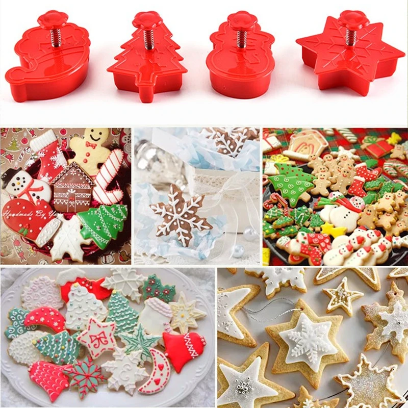 Набор формочек для печенья из рождественской серии, 4 шт., Мультяшные 3D формочки для торта, печенья, формочки для выпечки своими руками, инструменты для украшения